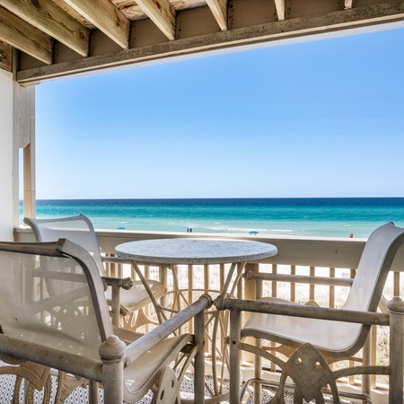 Top Reasons to rent this lovely Townhome:* Easy Beach Access Steps Away* Beachfront Townhome with Two Balconies* Corner Unit - additional western facing window with Views of the Gulf * Community Pool steps away, complete with picnic tables, outdoor showers, and restrooms* Less crowded west end of PCB w/ no high rises * Walk to Carillon Beach Marke