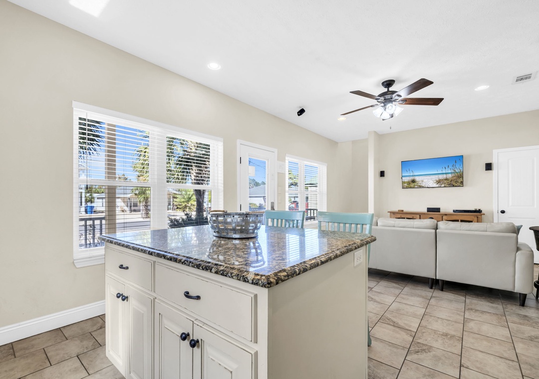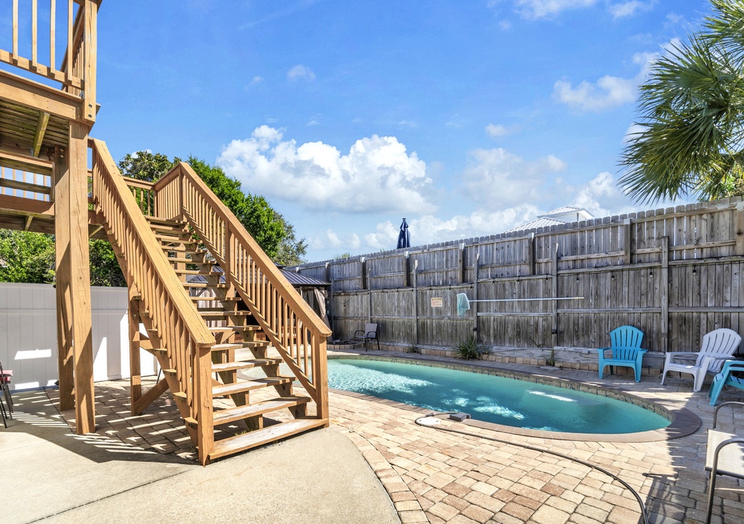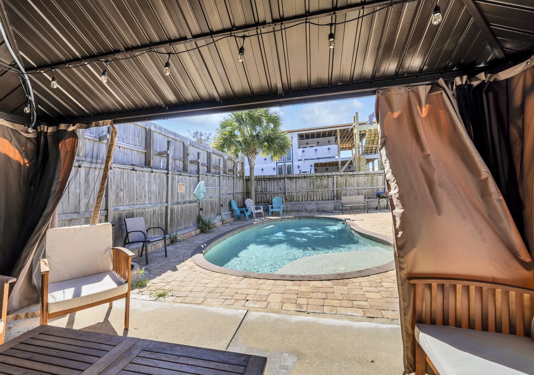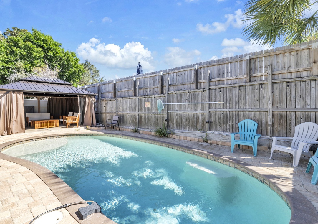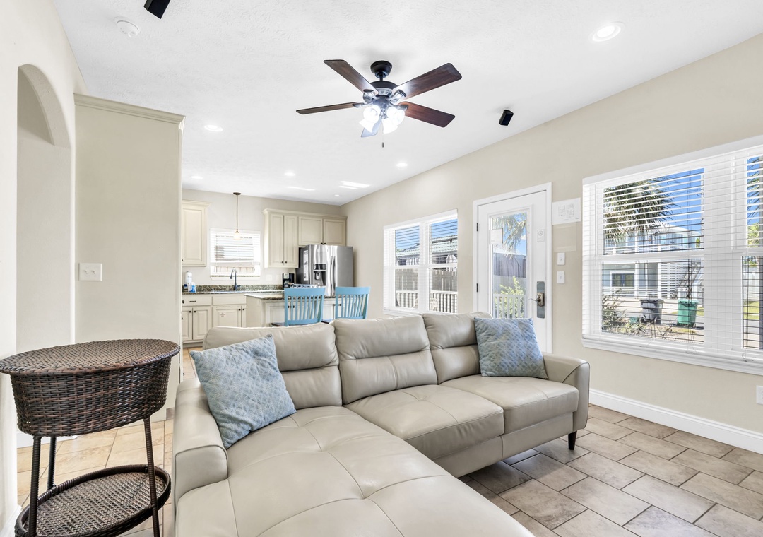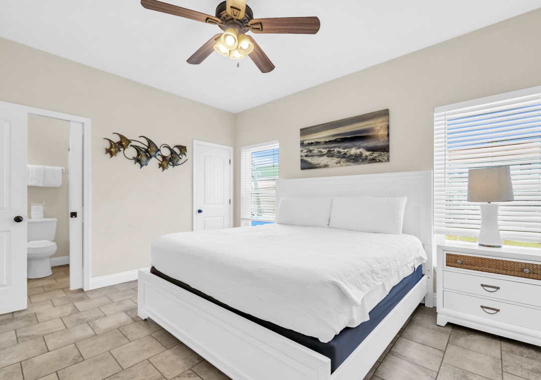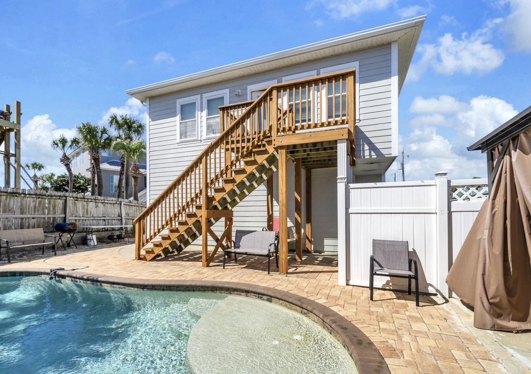 2 Palms B is your perfect coastal escape. This spacious home is just minutes from the beach, offering plenty of room to relax and recharge along with a private backyard pool for endless enjoyment. Inside, you’ll find comfortable sleeping arrangements for up to 7 guests, including a master bedroom with a king-size bed, a guest room with a queen bed, and a third bedroom featuring a twin-over-full bunk bed. After a sun-filled day at the shore, unwind on the front porch, lounge on the back porch, or take a refreshing dip in the pool. Enjoy meals together in the fully equipped kitchen or at one of the outdoor dining areas. Come see why the fun never stops at 2 Palms B!