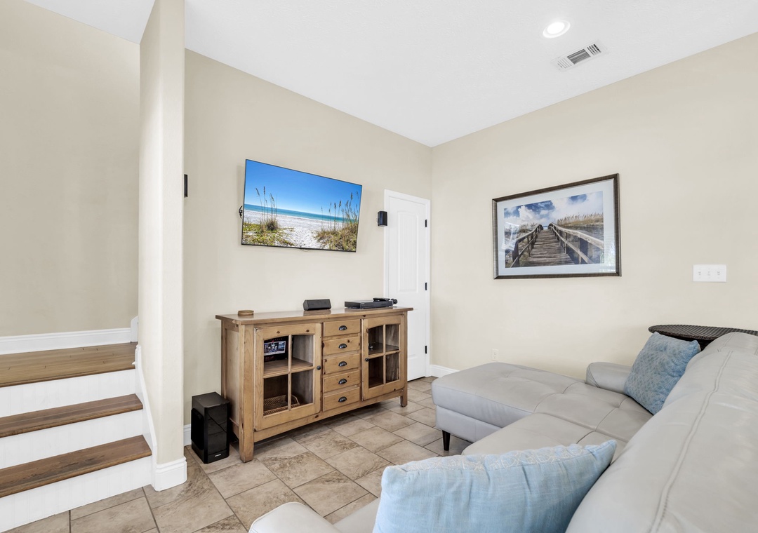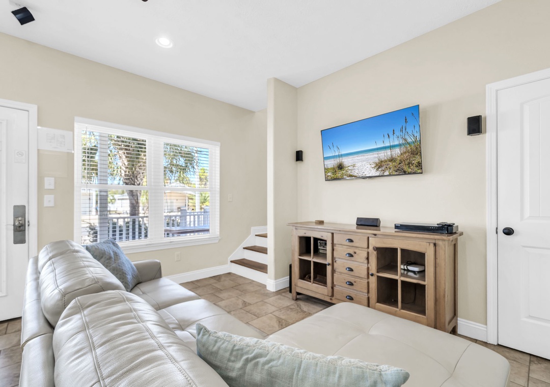 2 Palms B is the ground floor of the property. You'll enjoy full access to the first floor, including the golf cart, garage, and outdoor pool area. The second floor will be locked and remain vacant during your stay, ensuring privacy and a comfortable retreat for your group. Need more space? Contact us for information on renting the entire home, which accommodates up to 16 guests.