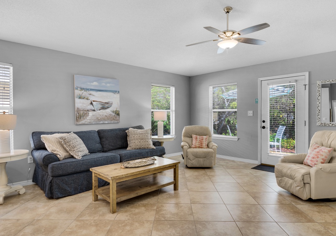 A Coastal Cottage is a lovely 3BR, 2BA cottage, conveniently located in Maravilla Resort, just across the street from beautiful Miramar Beach. There is a nice back porch to enjoy the beautiful night breeze and warm sunny days! Indulge your inner chef in the sleek kitchen, configured with ample counter space, top-quality appliances, and plenty of cookware. Families with children or seniors will enjoy the ease of staying in a one-level property. The master bedroom has a king bed and ensuite bath with dual vanities, a walk-in shower, and a garden tub. The guest bedroom has a queen bed, and a second guest bedroom has a twin over queen bunk bed, and in the living room is a sleeper sofa. This cottage sleeps 9 comfortably. The guest bathroom offers a combination tub/shower. There is also a washer and dryer available for added convenience. Enjoy the gorgeous private beach (about 550 yards) and make long-lasting memories at A Coastal Cottage!