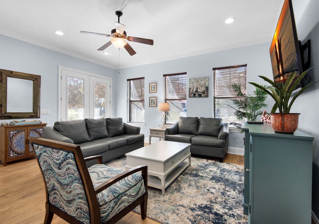 Villages of Crystal Beach is an exclusive, gated community only a few blocks from the beautiful blue waters and white sandy beaches of Destin. You can make the walk on foot or hop on the free seasonal trolley service (Memorial Day through Labor Day) they will even pick you up at the house and drop you off right at the beach! The pool area at Villages of Crystal Beach is a vacation must! The lagoon style zero entry pool is 30,000 square feet of gorgeous, sparkling clear water. There is a spa, tropical landscaping, and plenty of seating areas. It also has surround sound, a flat screen TV, and a grilling area to help you relax and unwind.