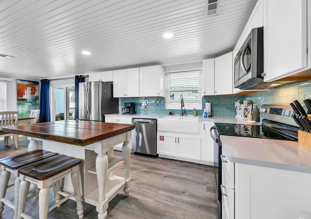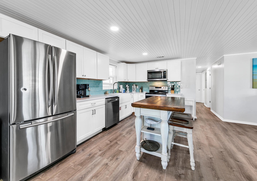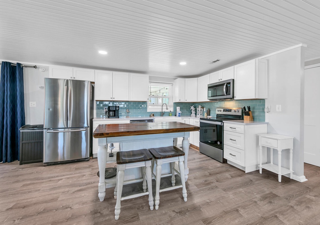 Welcome to your getaway at A Wave We Go! Nestled in the serene and family-friendly west end of the beach, this 3-bedroom, 2-bathroom home offers the perfect blend of comfort and convenience. Enjoy the master bedroom with a queen bed, a cozy queen bed in one guest room, and 2 twin beds in the other, making it perfect for up to 6 guests. Prepare anything from your morning coffee to a full-course meal in your well-equipped kitchen. Enjoy having dinner on your screen back porch and having morning coffee on your back porch. Come start making memories that will last a lifetime at A Wave We Go!
