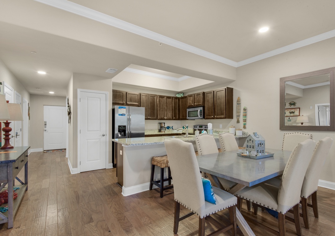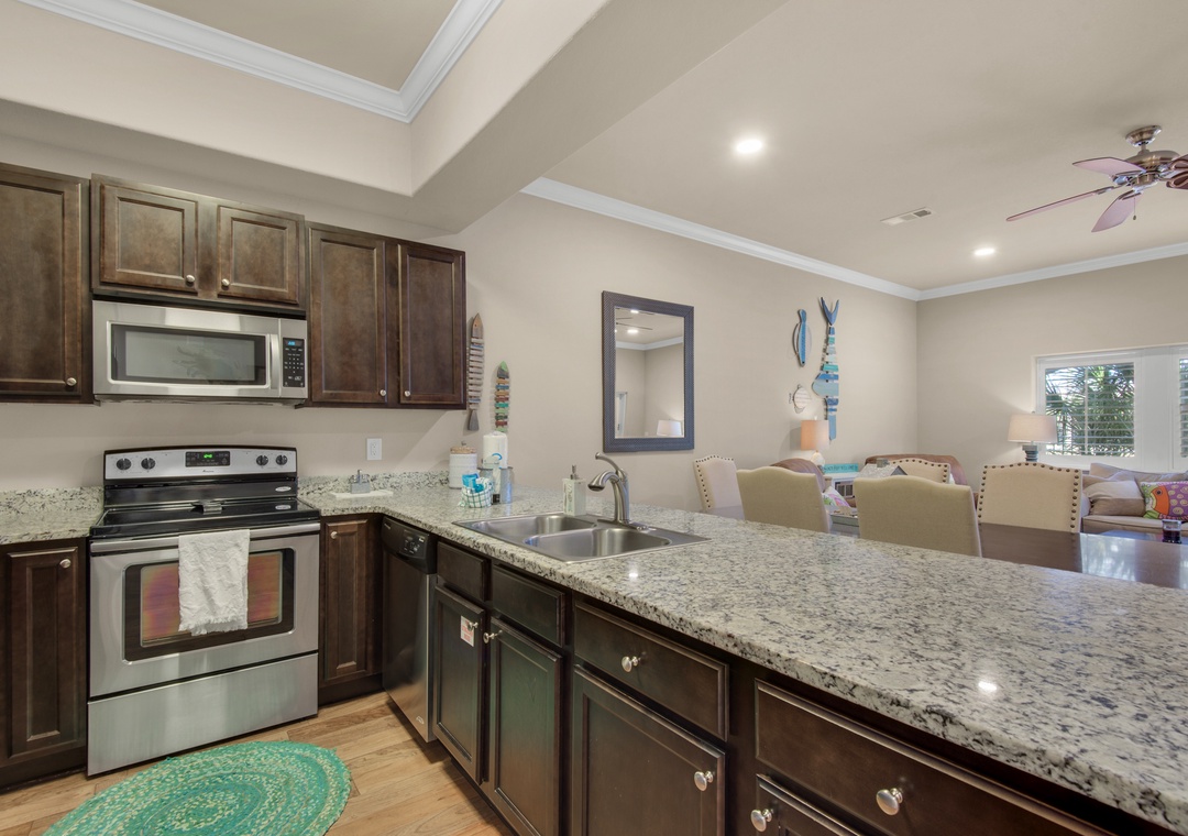 This property is very close to the beach. It was just a short walk. They had a closet with beach chairs, sand toys and other beach items for use which was very nice so check there before you go purchase anything! We did make dinner there one night and they had everything we needed. Overall great experience! Property is gated so very secure and very well kept.- Reviewed On: 6/28/2025