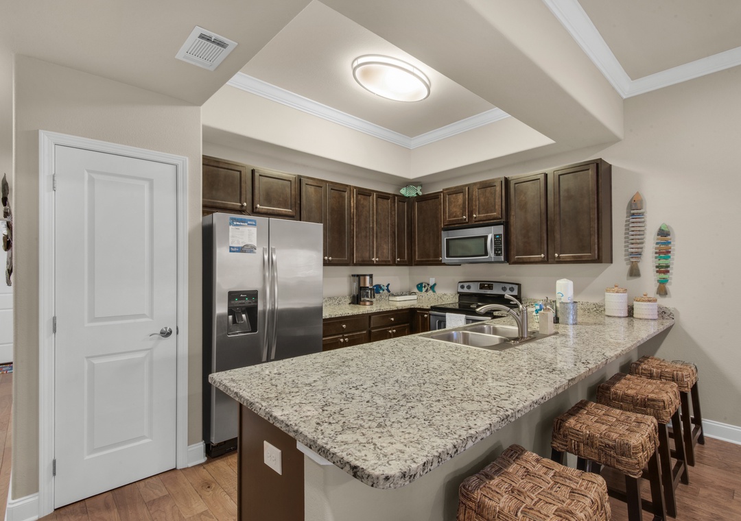 Loved our stay! very convenient to the pool and quick walk to the beach. The ground floor made it super easy with groceries and going to and from activities. The one issue was how much noise came through the ceiling from the unit above. You could hear footsteps, chairs moving, toilets flushing.