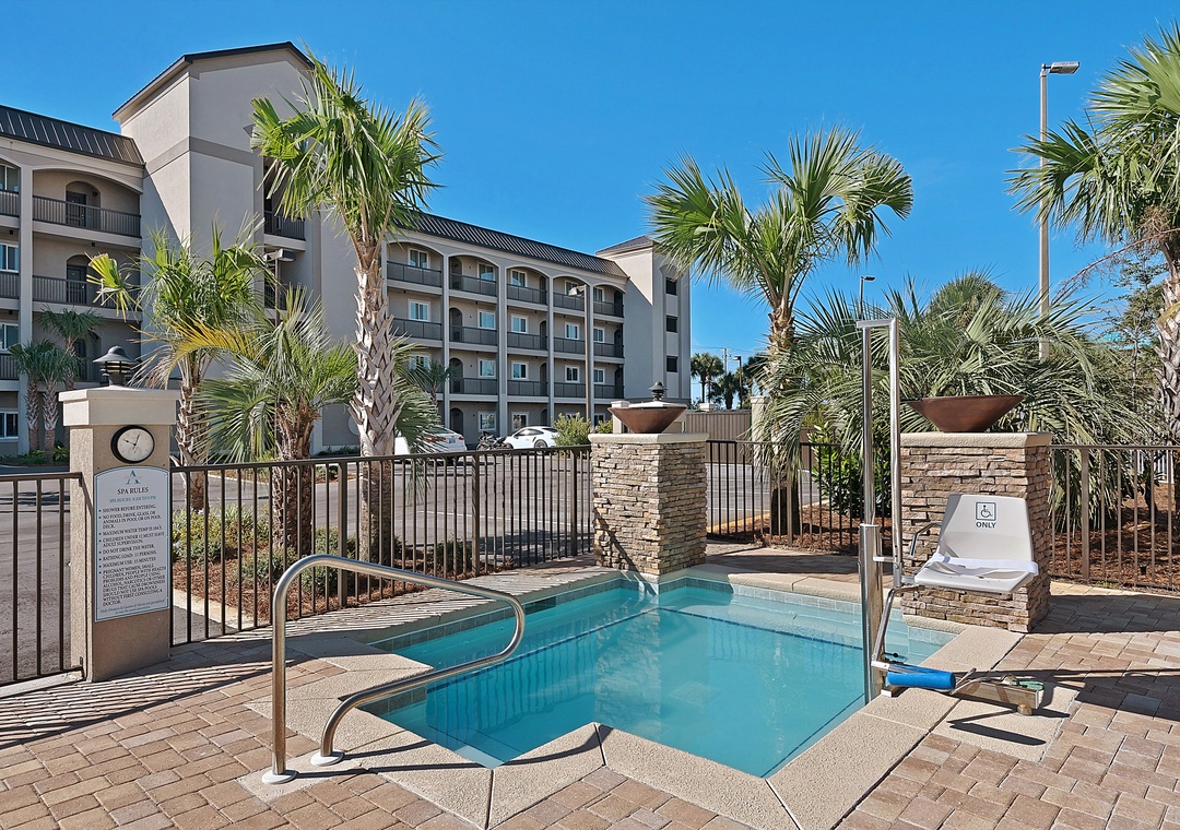 Alerio is a new complex featuring a community pool with a waterfall feature (seasonally heated), a hot tub with a waterfall feature, a grilling area, dancing fountains, and private beach access right across the street, and also an easy walk to Surf Hurt and Cabana Café. In addition to some of the area’s finest beaches, this complex is located within a mile of Silver Sands Outlets. For live music, fireworks, and delicious food in the evening, check out the Village of Baytowne Wharf, just 3 miles away. Alerio is the perfect choice for your next vacation!