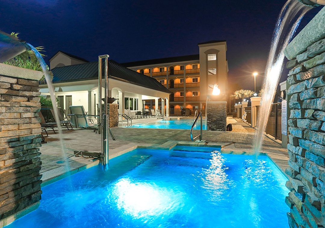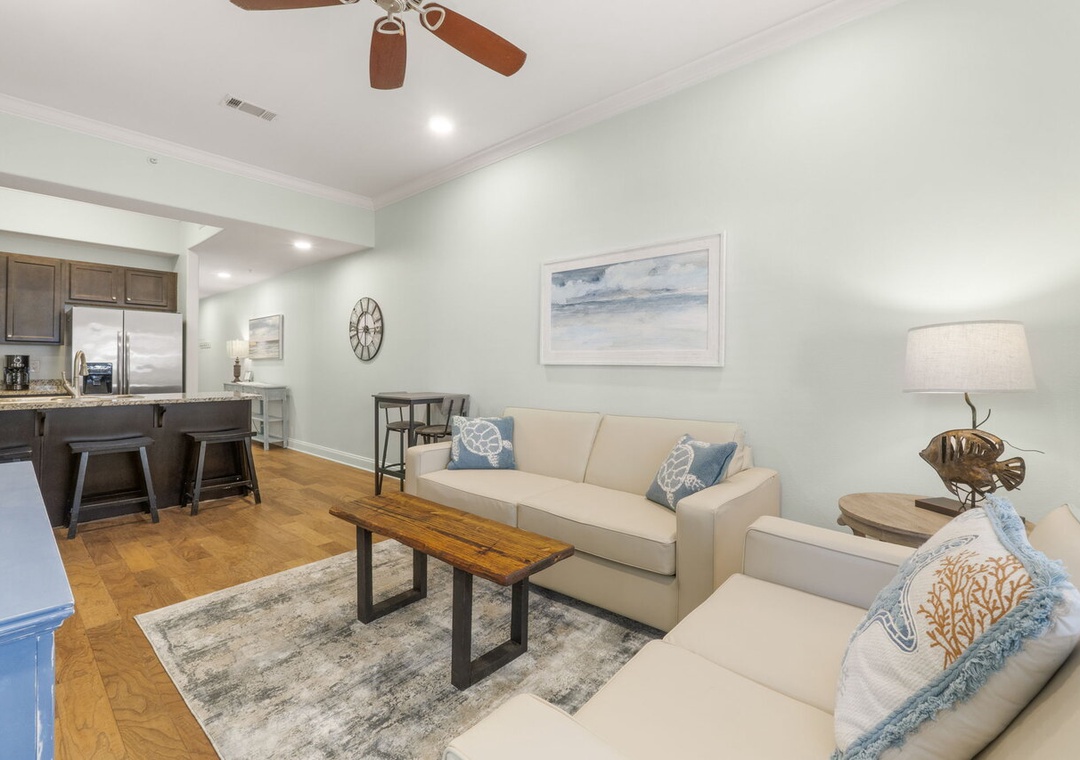 Alerio is a great, family friendly complex featuring a community pool with a waterfall feature (seasonally heated), a hot tub with a waterfall feature, a grilling area, dancing fountains, and private beach access right across the street, and also an easy walk to Surf Hurt and Cabana Café. In addition to some of the area’s finest beaches, this complex is located within a mile of Silver Sands Outlets. For live music, fireworks, and delicious food in the evening, check out the Village of Baytowne Wharf, just 3 miles away. Alerio is the perfect choice for your next vacation!