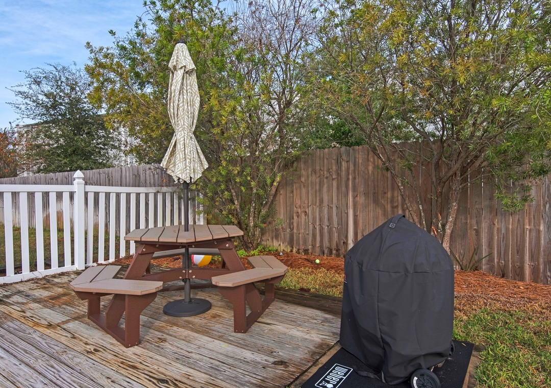 Great place to stay. It’s beautiful views around and the beach is walking distance. Also there’s a souvenir store right behind the street of the home. Also chick fil a and Starbucks across the street. The house also has and extra bunk bed that’s not pictured. It does have a blow drier I thought it didn’t have one so I took mine. The pool was perfect for us and it has so many sand toys and items to take to the beach. It has a charcoal grill. I recommend.- Reviewed On: 9/2/2025