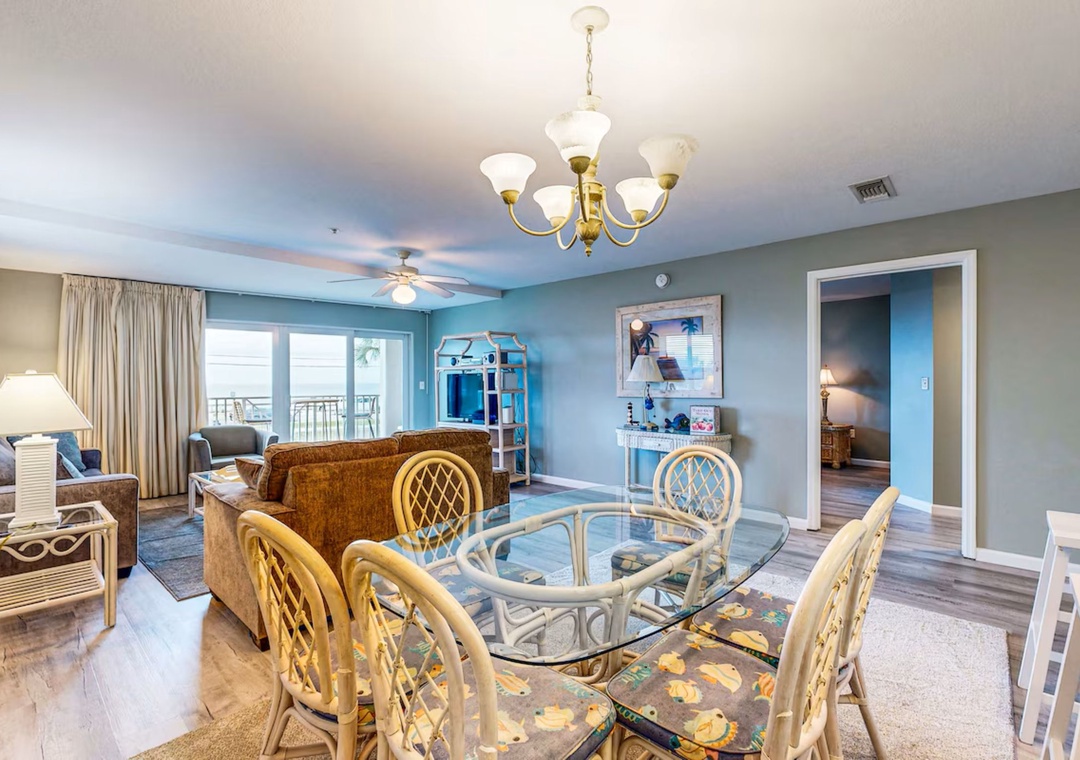 Welcome to Amalfi Coast 204A—a beautifully updated, beach-themed 2-bedroom, 2-bath condo on the 2nd floor of the private and gated Amalfi Coast Resort in Miramar Beach. Just steps from the pools and beach access, this spacious retreat is designed for the perfect coastal getaway. Start your mornings with coffee on the private balcony overlooking tranquil resort views. Enjoy cooking in the fully equipped kitchen, ideal for preparing meals after a day in the sun. The king master suite features an en-suite bathroom and direct access to the balcony. The guest bedroom also offers a comfortable king bed, and the bunk room with twin bunks is perfect for kids. A sleeper sofa in the living area brings the total sleeping capacity to 8 guests. Stay active in the onsite fitness center, take a dip in one of the sparkling pools, enjoy a friendly game of tennis, or stroll the brick pathway straight to the sugar-white sands. Amalfi Coast 204A is your ideal beach escape—where relaxation, convenience, and coastal charm come together on the Emerald Coast.