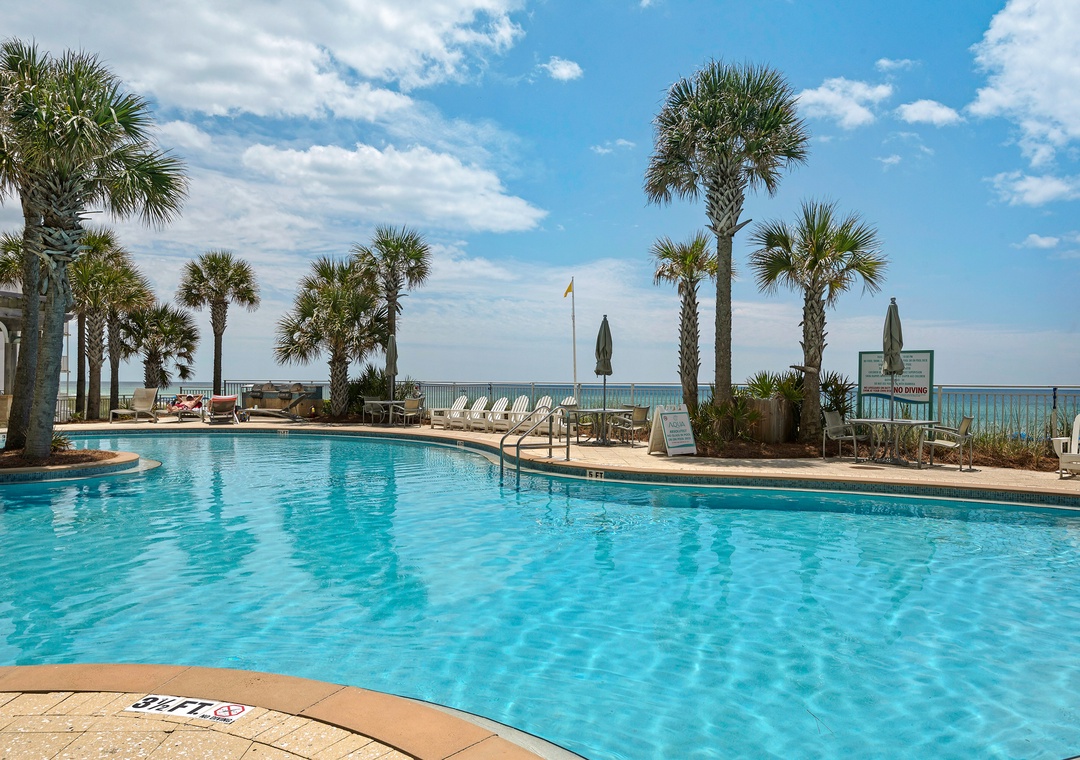 In the heart of Panama City Beach, Aqua Resort features a luxurious Gulf Front, 22 22-story high-rise, only 0.4 miles from Pier Park! The resort includes a large Gulf Front relaxation pool, a Gulf Front indoor/outdoor pool and hot tub, surrounded by a tropical patio studded with palm trees, chaises, and tables where you can enjoy a snack or a game of cards while listening to the surf lap onto the sugar-white sands. Additional amenities are a poolside café with WIFI and TVs, a poolside grilling area, and 4 high-speed elevators, so there is little wait time between the FUN. The complex also has a fully-equipped fitness center overlooking the pools and the Gulf. Your resort experience will be unparalleled with everything Aqua Resort has to offer.