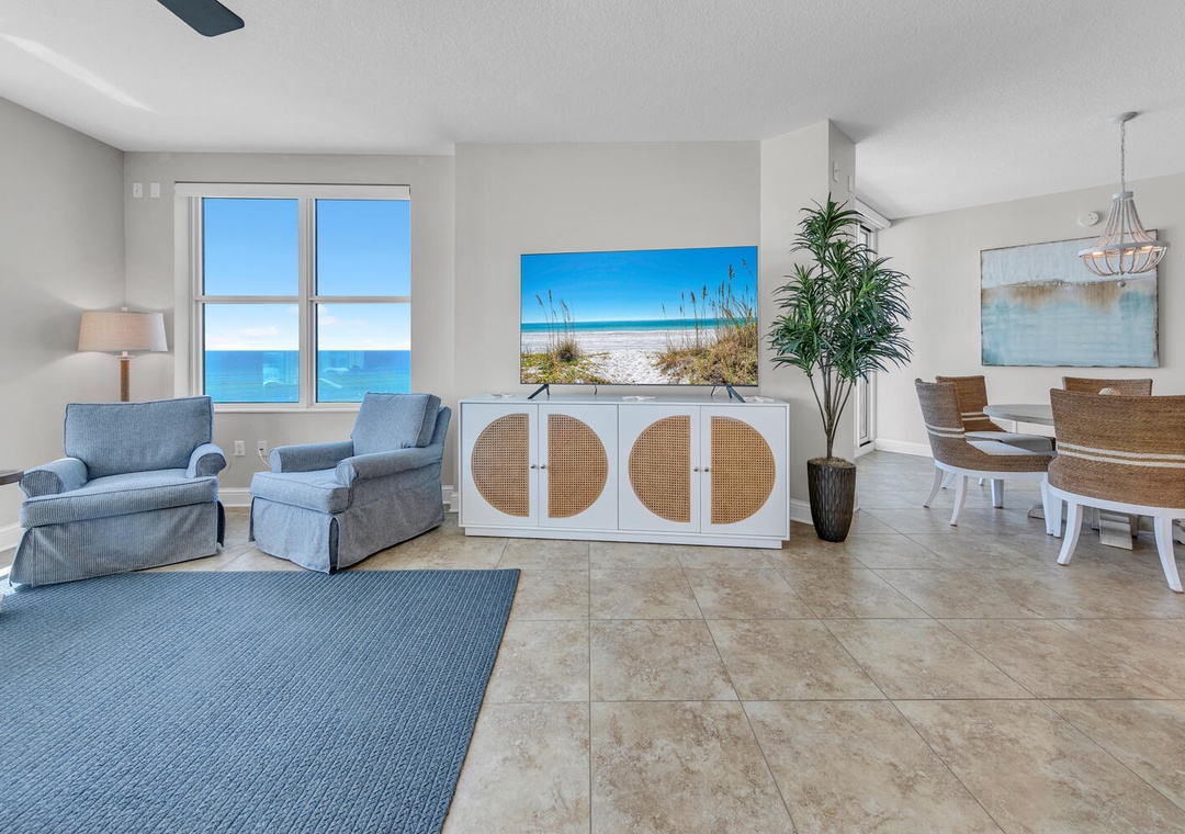 This is a gorgeous condo! The square footage is Awesome. Plenty of room to spread out. Beds are very comfortable. The view is awesome. Location is perfect. Close to everything! Floor to ceiling windows in master suite. Every bedroom has a balcony. The main balcony is huge with quality and comfortable furniture. Overall Excellent! Needs More comfortable furniture in the main family room. The two chairs are not comfortable. Plus… the furniture in the condo do not match the pic on booking. I booked this condo because it had a recliner. One adult on the trip requires a recliner for medical reasons. When we arrived condo has different furniture than shown. Needs updating. This is a 3 bedroom Condo and should have better quality and comfortable seating to accommodate this size condo.- Reviewed On: 4/20/2024