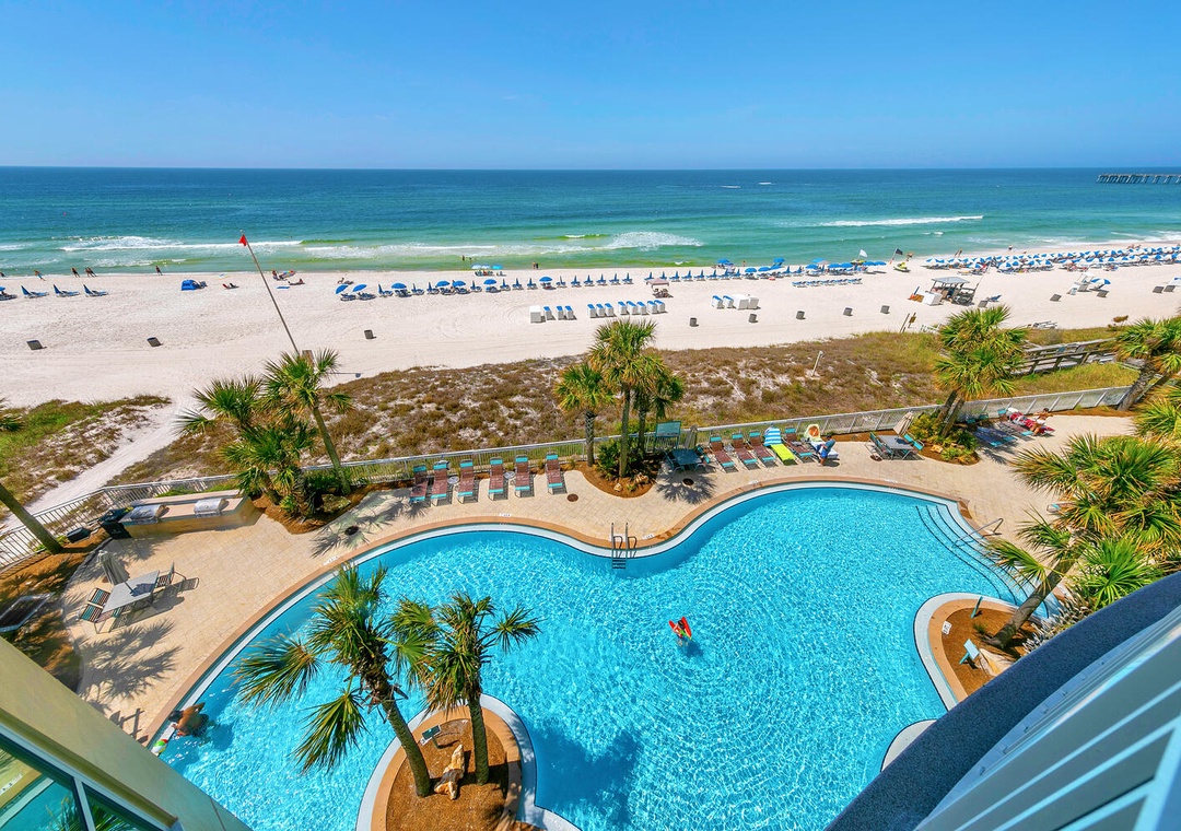 In the heart of Panama City Beach, Aqua Resort features a luxurious Gulf Front, 22 22-story high-rise, only 0.4 miles from Pier Park. The resort includes a large Gulf Front relaxation pool, a Gulf Front indoor/outdoor pool and hot tub, surrounded by a tropical patio studded with palm trees, chaises, and tables where you can enjoy a snack or a game of cards while listening to the surf lap onto the sugar-white sands. Additional amenities are a poolside café with WIFI and TVs, a poolside grilling area, and 4 high-speed elevators so there is little wait time between the FUN. The complex also has a fully-equipped fitness center overlooking the pools and the Gulf. Your resort experience will be unparalleled with everything Aqua Resort has to offer.