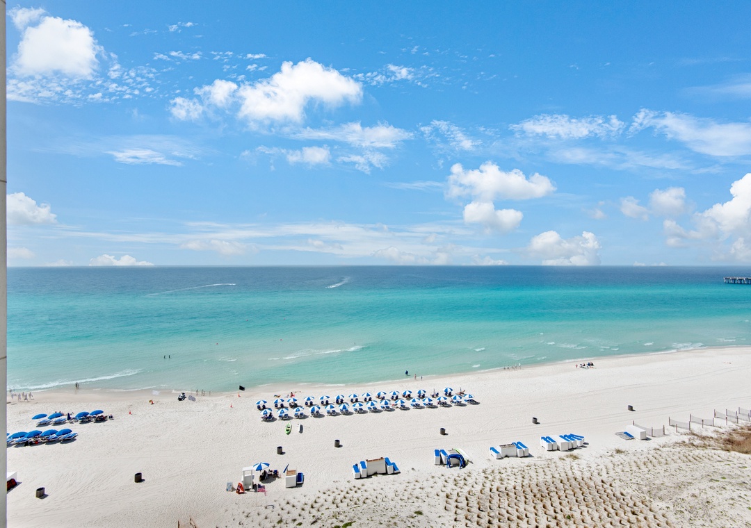 In the heart of Panama City Beach, Aqua Resort features a luxurious Gulf Front, 22 22-story high-rise, only 0.4 miles from Pier Park . The resort includes a large Gulf Front relaxation pool, a Gulf Front indoor/outdoor pool and hot tub, surrounded by a tropical patio studded with palm trees, chaises, and tables where you can enjoy a snack or a game of cards while listening to the surf lap onto the sugar-white sands. Additional amenities are a poolside café with WIFI and TVs, a poolside grilling area, and 4 high-speed elevators, so there is little wait time between the FUN. The complex also has a fully-equipped fitness center overlooking the pools and the Gulf. Your resort experience will be unparalleled with everything Aqua Resort has to offer.