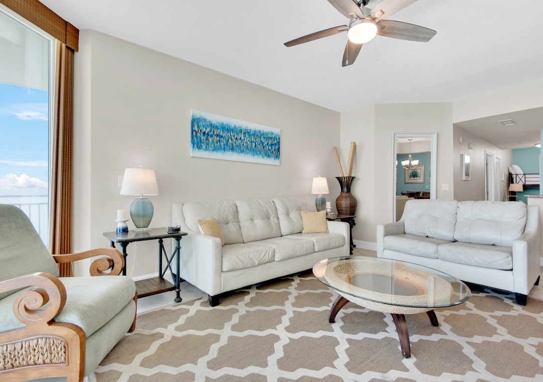 Welcome to Aqua Resort 811, nestled in the breathtaking Panama City Beach! This charming 2-bedroom + Hall Bunks, 2-bath condo is beautifully furnished and thoughtfully designed to provide ultimate comfort. The open-concept living area features a fully equipped kitchen and multiple flat-screen TVs for your entertainment throughout the property. The master suite boasts a king-size bed and an en-suite bathroom, while the additional rooms include a queen guest bedroom, a cozy bunk room with a twin-over-twin bunk bed, and a sleeper sofa in the living room. This inviting condo comfortably accommodates up to 8 guests. Begin your days with a cup of coffee on the spacious 8th-floor wraparound balcony, offering stunning views of the pristine white sands and crystal-clear emerald waters. Make Aqua Resort 811 the destination for your next unforgettable getaway!