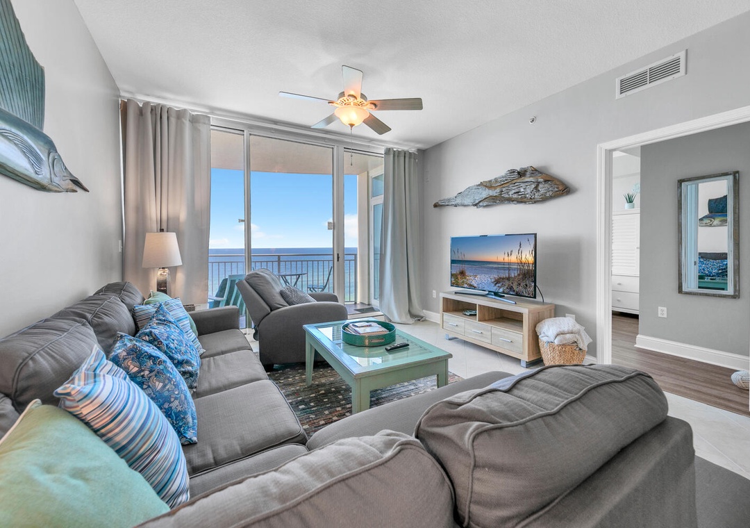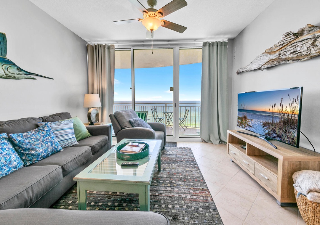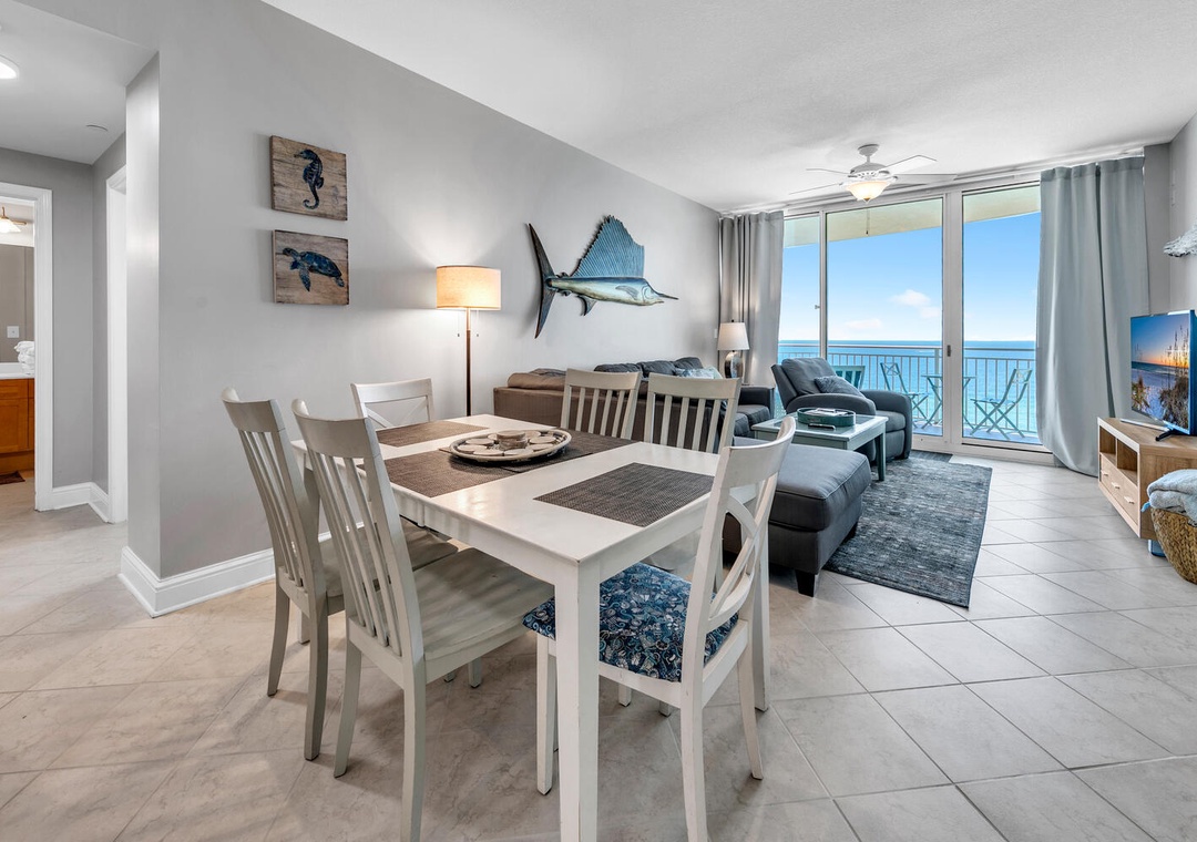 Welcome to Aqua Resort 903 in beautiful Panama City Beach! This 3 bed plus Bunk Nook/3 bath unit is filled with gorgeous furnishings you are sure to love. Aqua Resort 903 boasts an open concept living space with a fully equipped kitchen and multiple flat-screen TVs. The Gulf front master suite provides a king-size bed and a private ensuite! The Guest Suite offers a queen bed with a private ensuite. The second queen guest bedroom offers beautiful gulf views. The bunk nook provides a set of twin over twin bunks. This lovely Panama City Beach unit sleeps 8 guests comfortably! Enjoy free Beach Service March 1st- October 31st! Wake up with morning coffee or enjoy magnificent sunsets from the 9th-floor balcony with breathtaking views of sugar white sands and emerald waters! Make Aqua Resort 903 your new favorite vacation getaway!