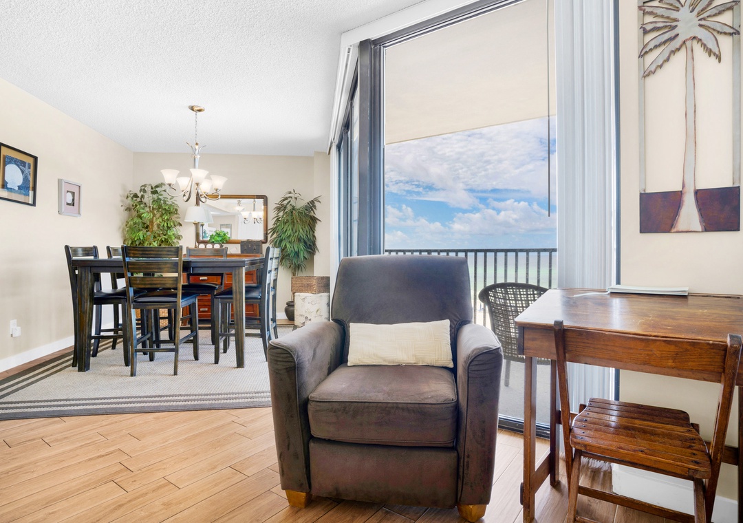 Room was awesome and updated. Right on the beach with great view of ocean and dolphins. Kitchen had everything we needed. Plenty of towels. Beds were comfy. Having a washer and dryer was great! Loved that this condo only had 8 floors so your not super high up. Parking area on site was great! You can park under the condo on ground level for covered parking or on the outside edge of condo for larger vehicles or vehicles with rooftop carriers like us. Pool and hot tub were small but nice and clean.We never saw or came across any staff but the condo owners we met were friendly. The reason I gave a 9 for the review was due to the wifi issue never being resolved and never having any wifi during the entire stay. Only stair access to the beach. There was no ramp.Wifi would not work. Made 2 phone calls about the wifi but no one came to repair it.- Reviewed On: 10/11/2020