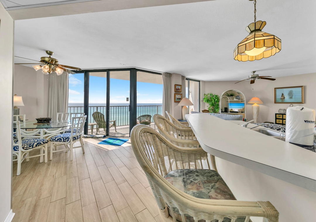 We had a wonderful time at this AirBnb. The view was absolute exquisite— stunning views of the ocean right from the living area, with a spacious balcony. The beach was much quieter than the rest of the PCB strip, but it was less than 10 minutes to the pier and bustling night life. The restaurants were delicious and everything felt very family friendly. We even had the pool to ourselves each morning! The bathrooms and kitchen in the condo were quite dated, but all worked well and had everything we needed. The only thing missing would have been a spatula for the kitchen. Altogether a very relaxing stay; we felt right at home and would definitely visit again.- Reviewed On: 7/1/2024