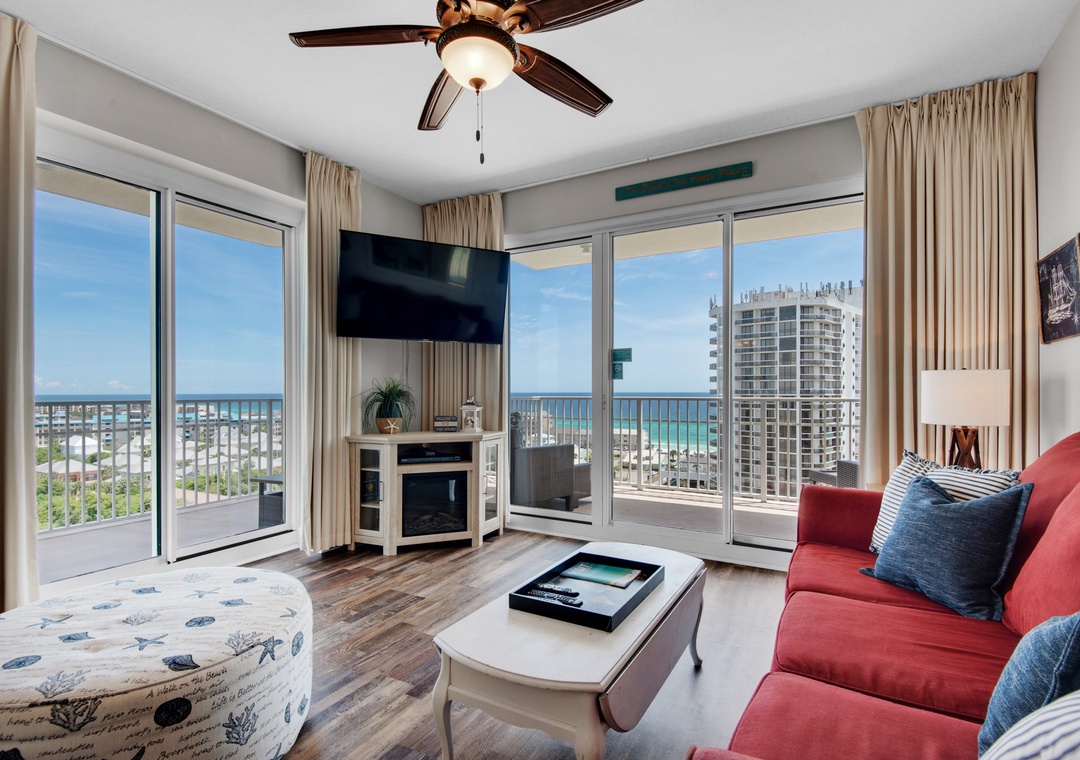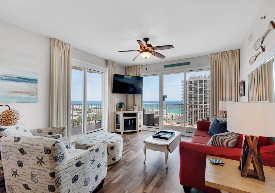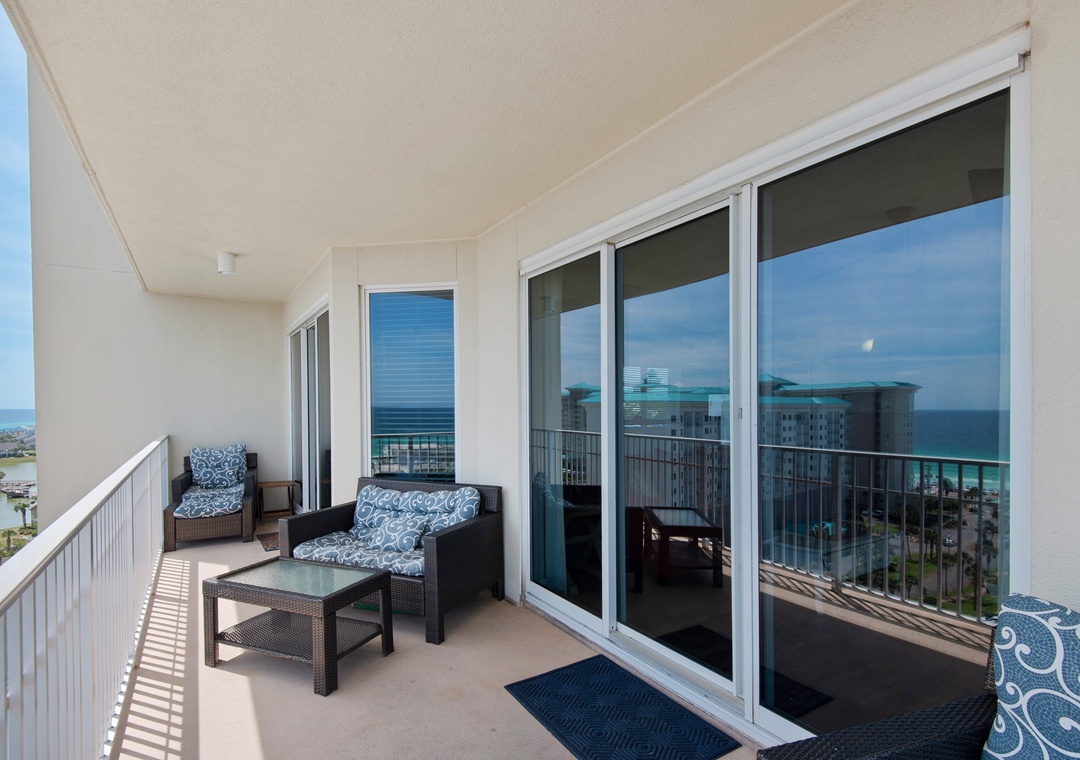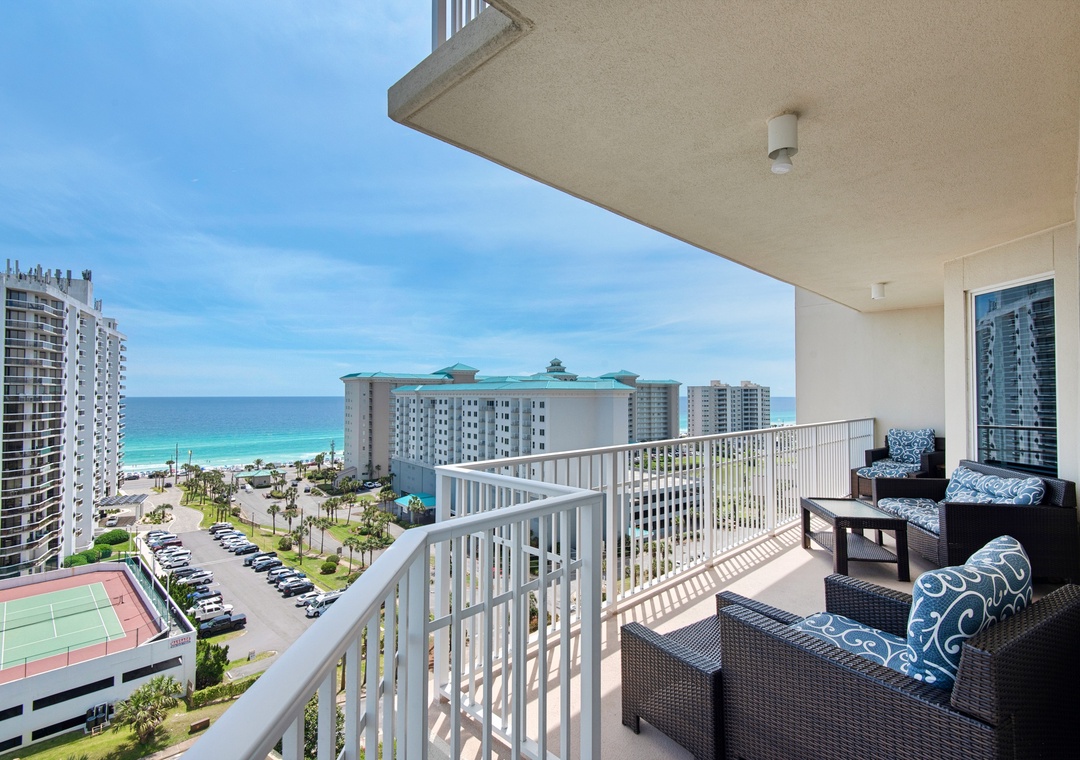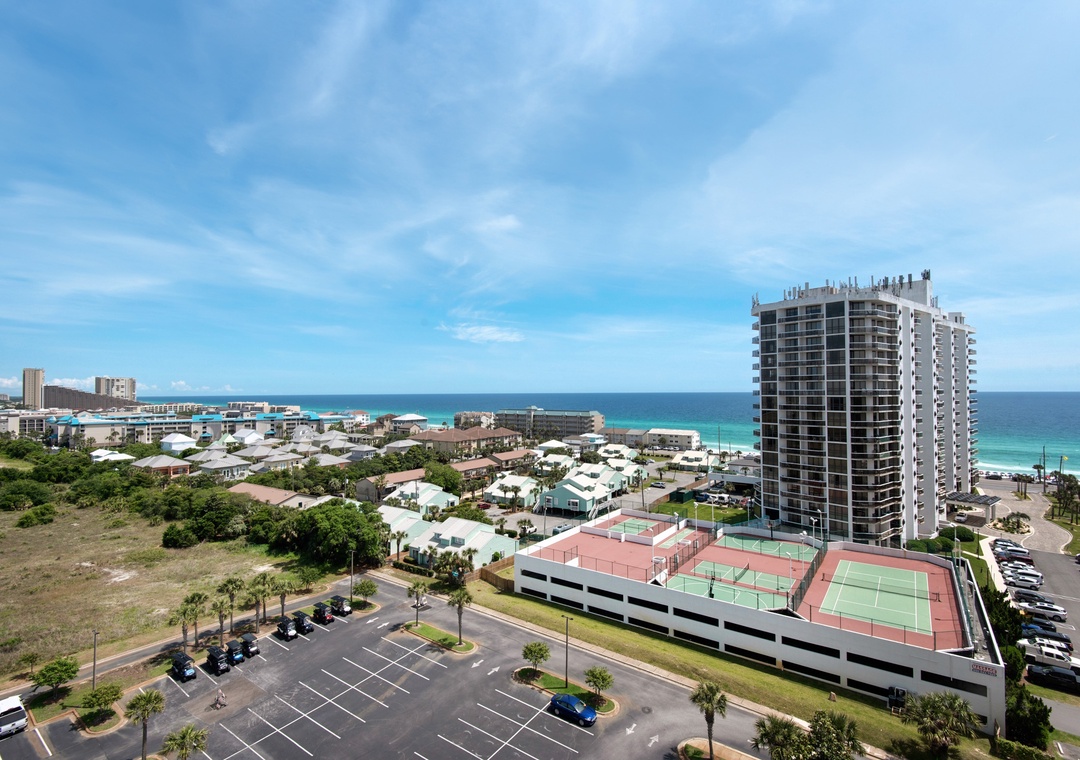 Ariel Dunes offers 24 stories of amazing views that span the sugar white sands and emerald green water of the coastline. The building is angled slightly to the west, at the sunsets are incredible! From the rear of the building, you get a bird's eye view of the lush Seascape Golf Course, and the sparkling Choctawhatchee Bay.