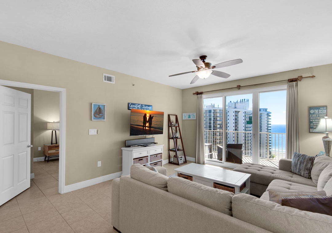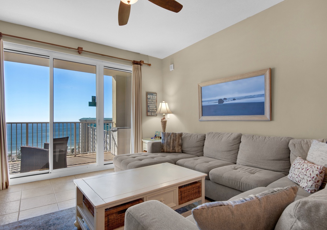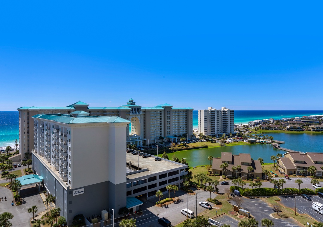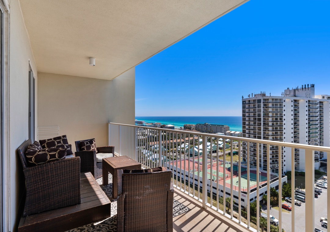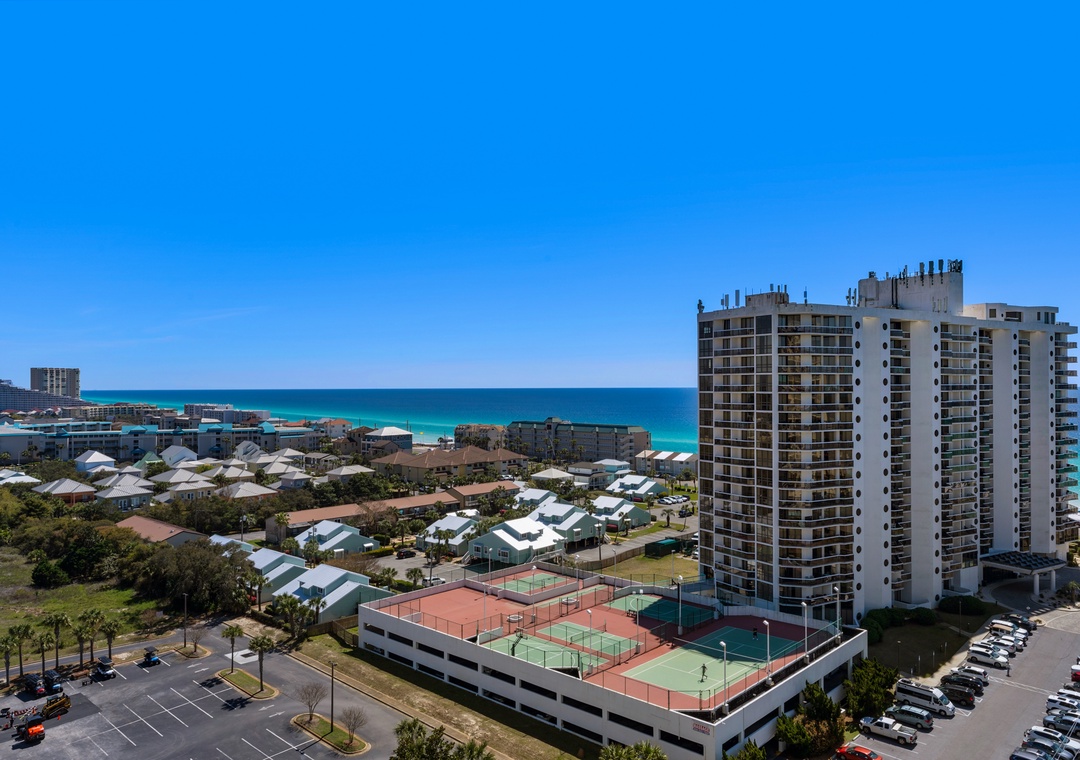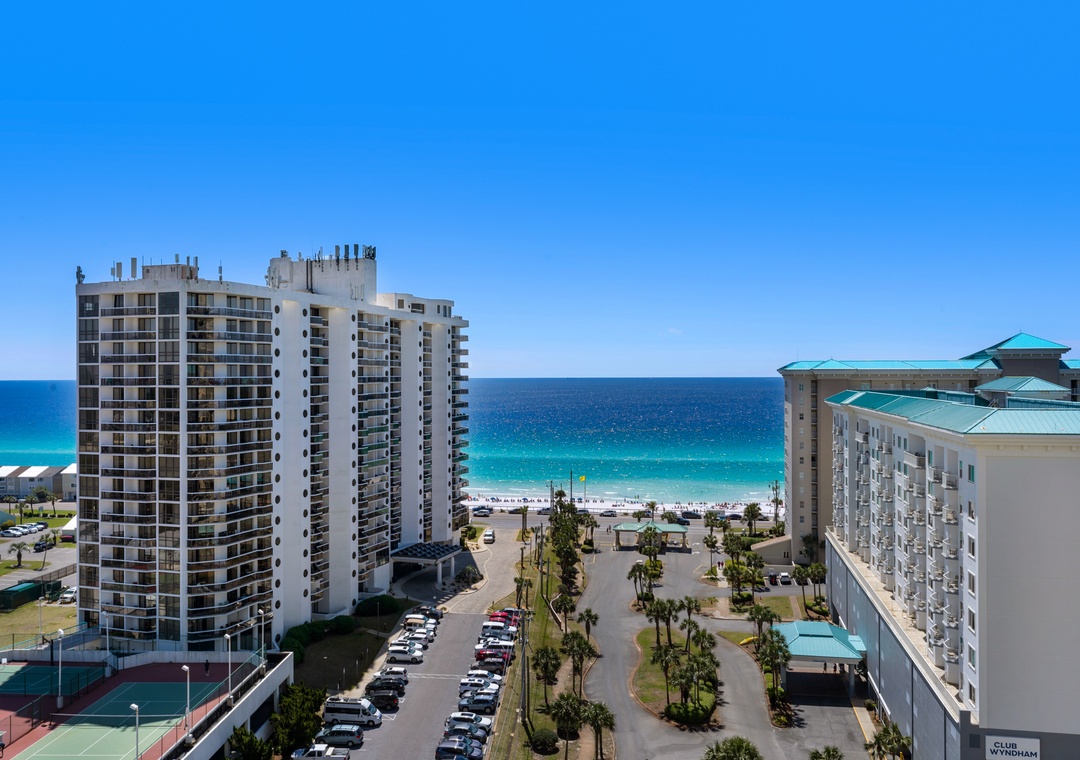 Ariel Dunes offers 24 stories of amazing views that span the sugar white sands and emerald green water of the coastline. The building is angled slightly to the west, and the sunsets are incredible! From the rear of the building, you get a bird's eye view of the lush Seascape Golf Course, and the sparkling Choctawhatchee Bay.