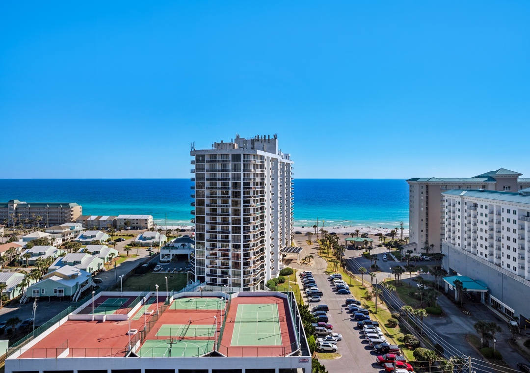 Ariel Dunes offers 24 stories of amazing views that span the sugar white sands and emerald green water of the coastline. The building is angled slightly to the west, and the sunsets are incredible! From the rear of the building, you get a bird's eye view of the lush Seascape Golf Course, and the sparkling Choctawhatchee Bay.