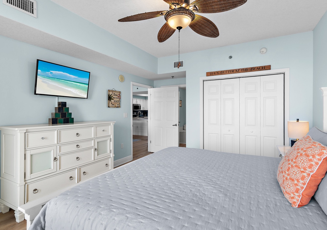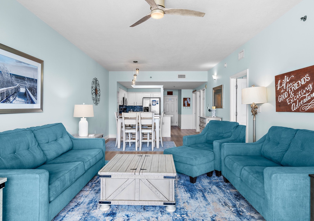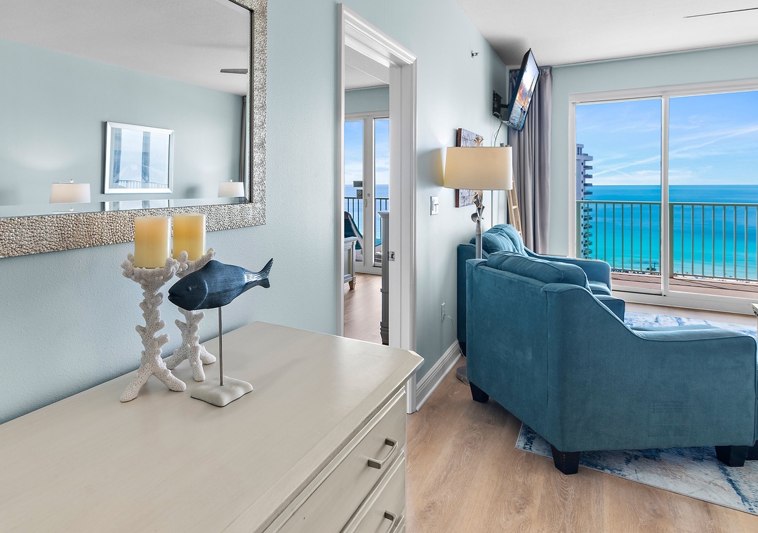 The condo we stayed in was good for our needs! There is a bar and restaurant at the floor level, a nice spacious balcony and a comfortable living area. The only thing I did not like about our stay was thankfully a non-issue but, the contract that comes from the leasing company is ridiculous. It stated that if there was a catastrophic natural disaster event that made the property uninhabitable, no refunds would be granted. Had I not already paid before I had to sign this contract I might not have stayed. As someone who has dealt with hurricanes this is utterly ridiculous that the company could keep my money if they are unable to render the promised services to me. Instead I was encouraged to get 'trip insurance.' So I should pay you more money for the possibility that God Himself destroys your property to get my money back? Ridiculous! I hope the RealJoy vacations team sees this and realizes the absurdity of their contract which leaves customers without options after they have already paid for their stay. Thankfully the gulf was quiet that week and we had a great stay 5 stars.- Reviewed On: 7/16/2021