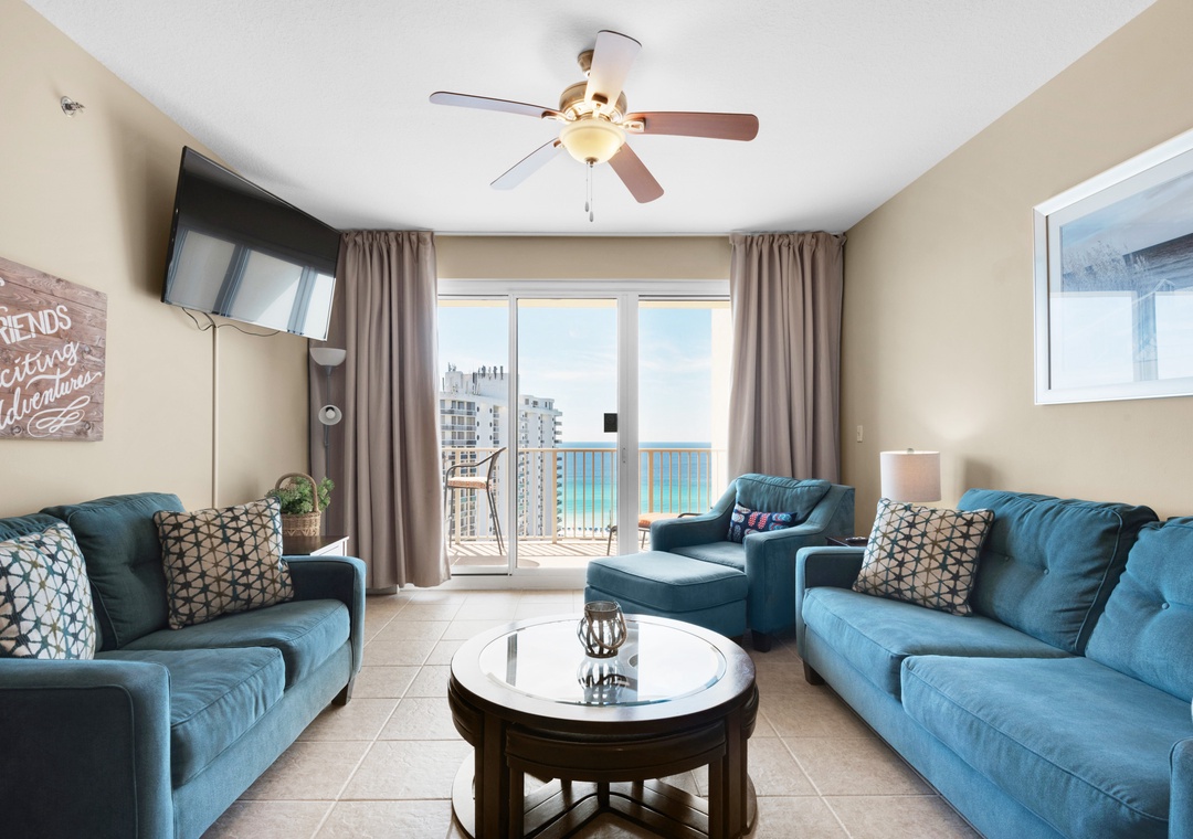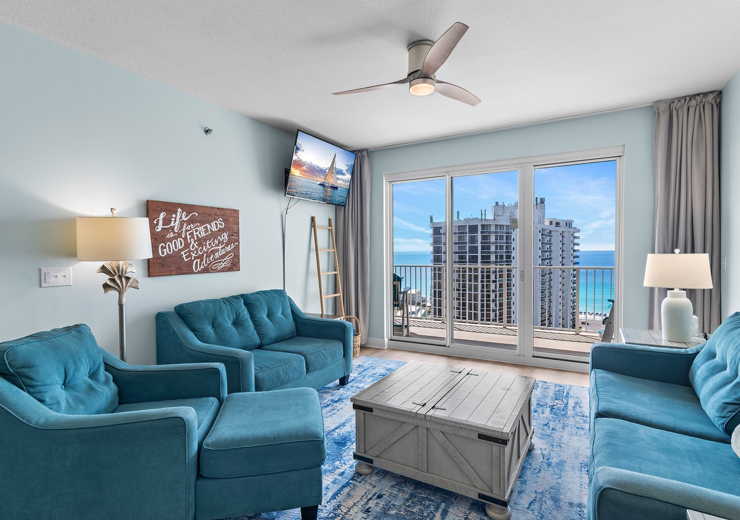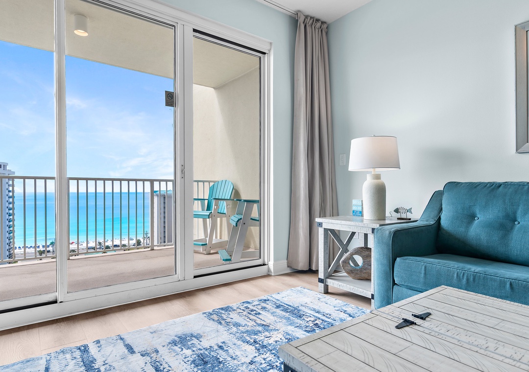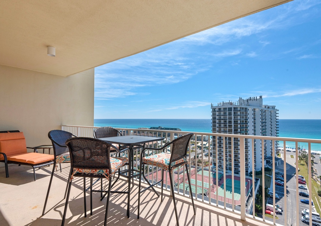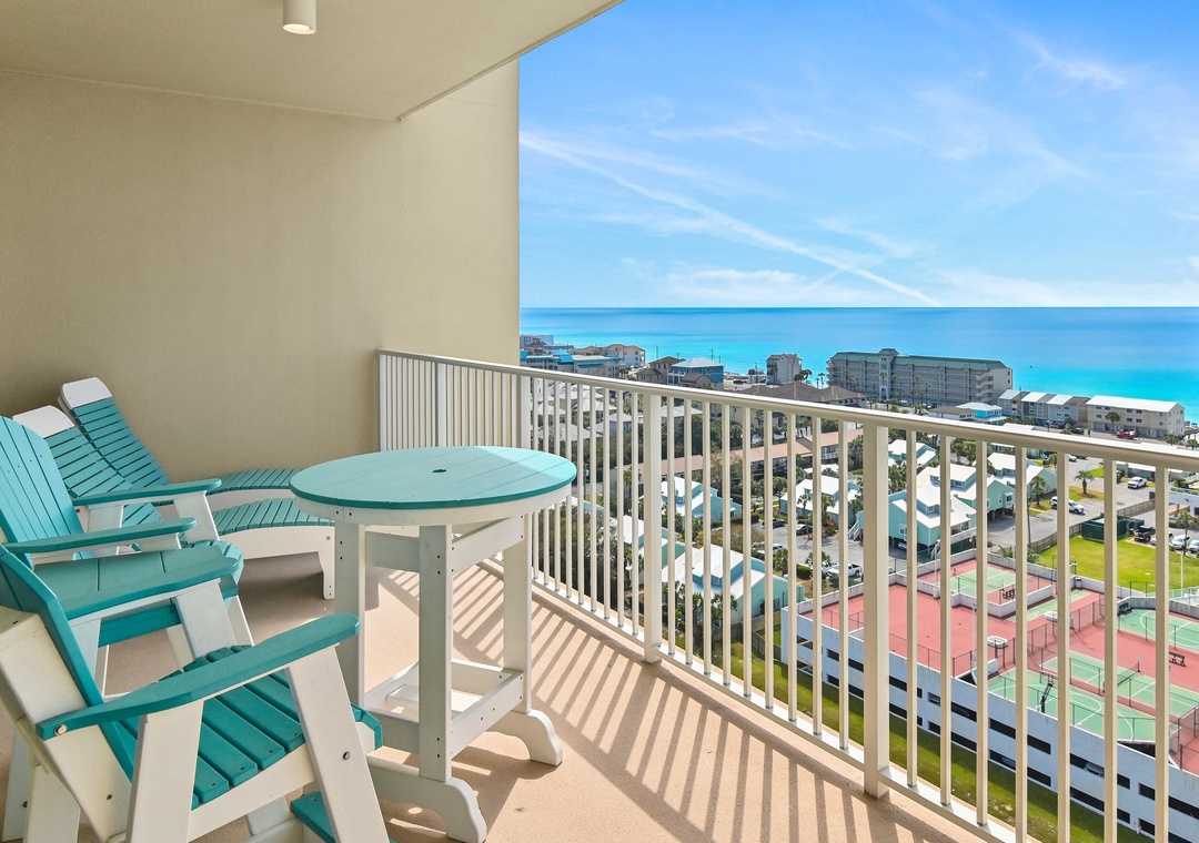 Ashton, we are happy to know that you enjoyed this Ariel Dunes I condo's perfect view, convenient location, and large balcony. Thank you for choosing Real Joy.Real Joy staff
