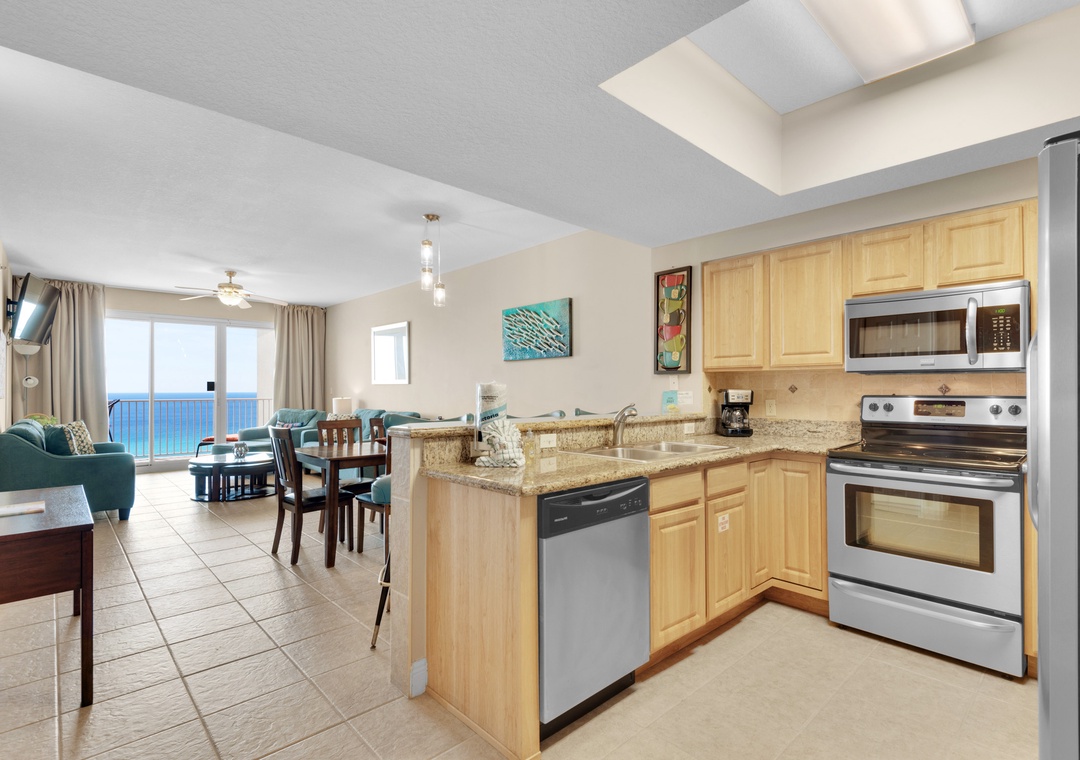 Lovely condo with beautiful views of the water and a short walk to the beach.