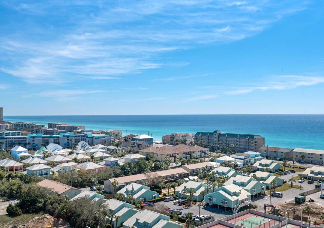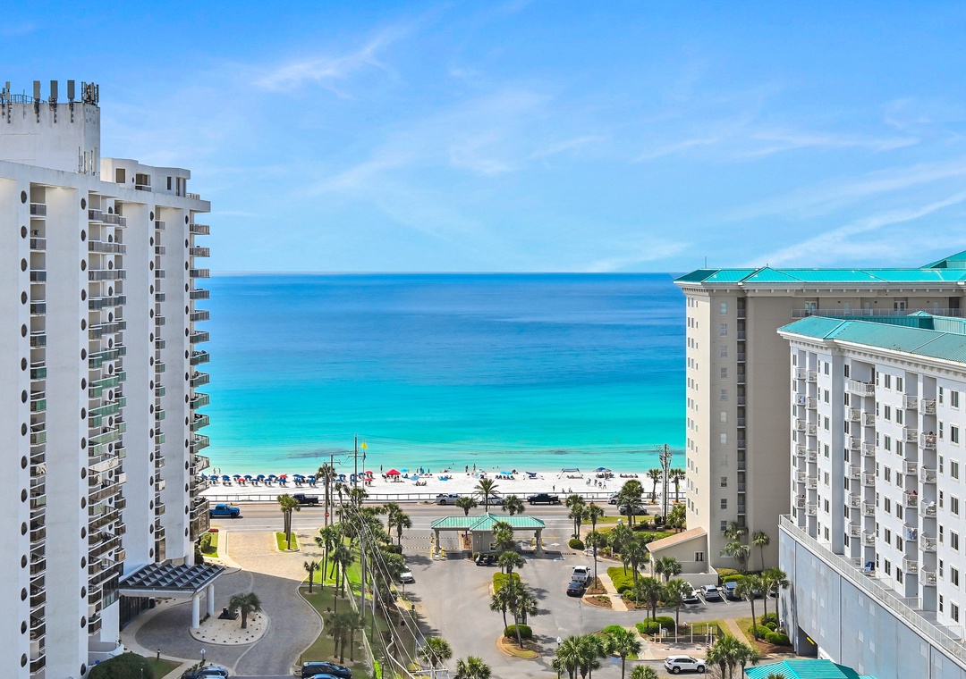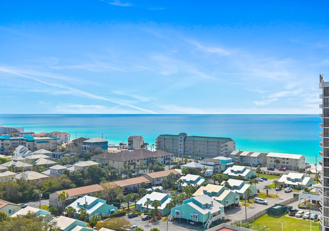 Ariel Dunes offers 24 stories of amazing views that span the sugar white sands and emerald green water of the coastline. The building is angled slightly to the west, and the sunsets are incredible! From the rear of the building, you get a bird's eye view of the lush Seascape Golf Course, and the sparkling Choctawhatchee Bay.