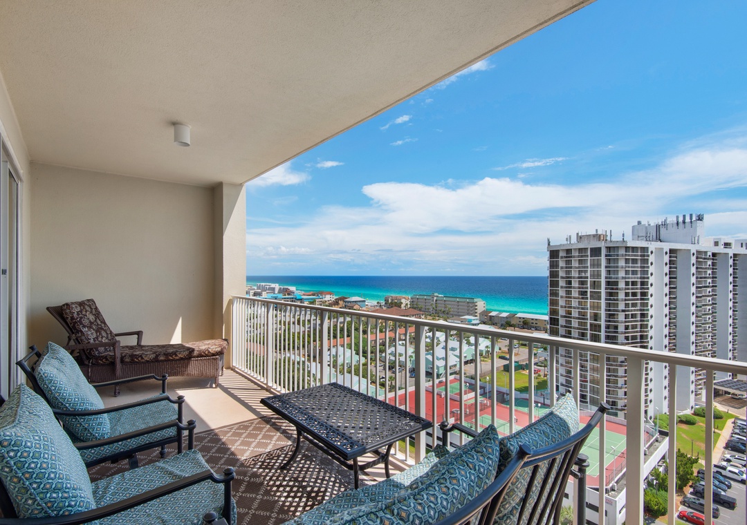 Ariel Dunes offers 24 stories of amazing views that span the sugar white sands and emerald green water of the coastline. The building is angled slightly to the west, and the sunsets are incredible! From the rear of the building, you get a bird's eye view of the lush Seascape Golf Course, and the sparkling Choctawhatchee Bay.
