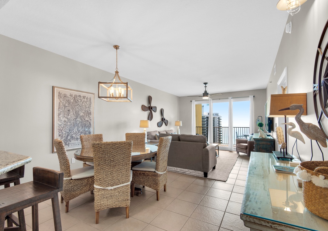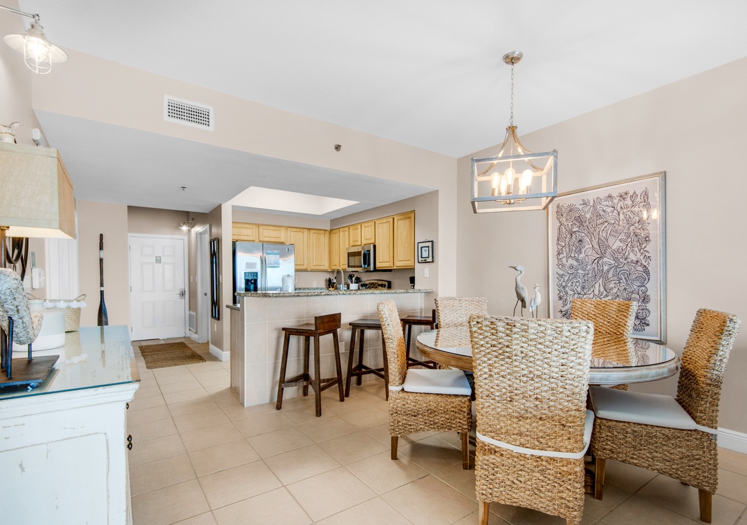Enjoy spectacular Gulf Views from the private, 14th floor balcony of Ariel Dunes I 1408! This newly remodeled 2 bedroom, 2 bath condo offers a spacious living area, tile flooring throughout, and a large dining table for 6 plus extra seating at the bar. Granite countertops, modern tile, and stainless-steel appliances are just some of the details to ensure that your vacation is simply wonderful. The king master suite features Gulf Views with balcony access and a private bathroom with a separate shower, soaking tub, and dual vanity sinks! There is also a guest bedroom with a queen bed and a sleeper sofa in the living room, sleeping up to 6 guests. Come check out why Ariel Dunes I 1408 is a family favorite!