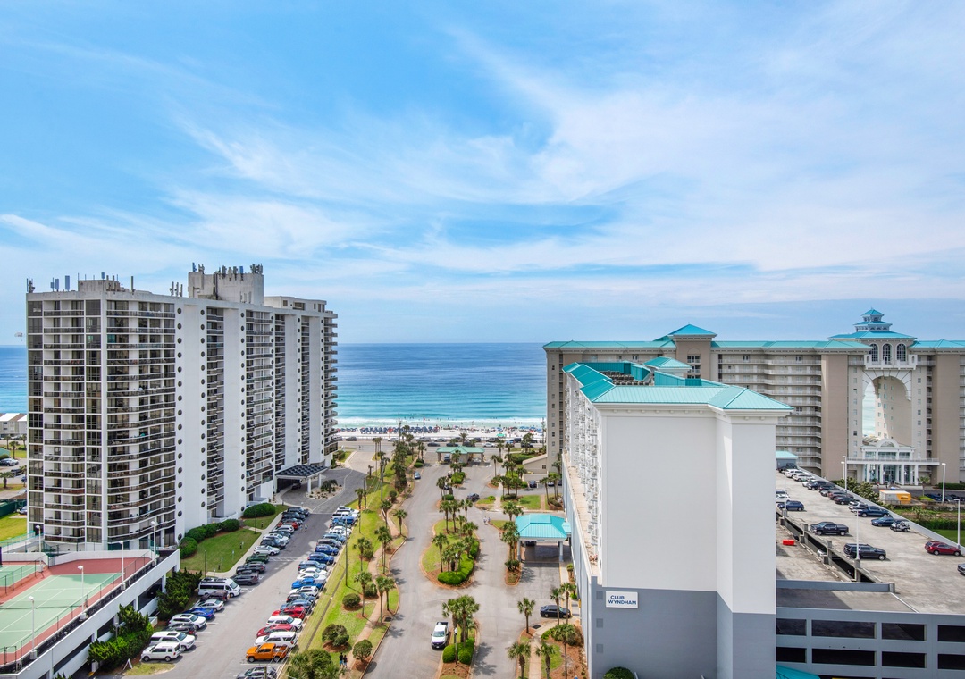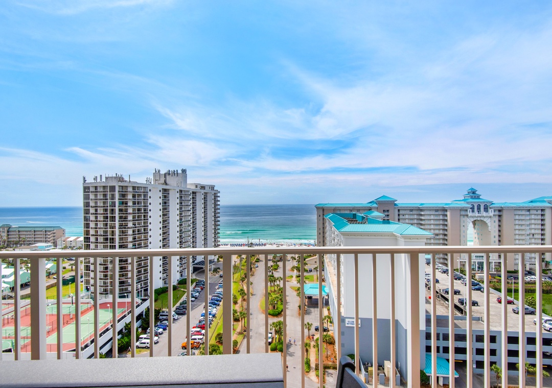 Ariel Dunes offers 24 stories of amazing views that span the sugar white sands and emerald green water of the coastline. The building is angled slightly to the west, and the sunsets are incredible! From the rear of the building, you get a bird's eye view of the lush Seascape Golf Course, and the sparkling Choctawhatchee Bay.