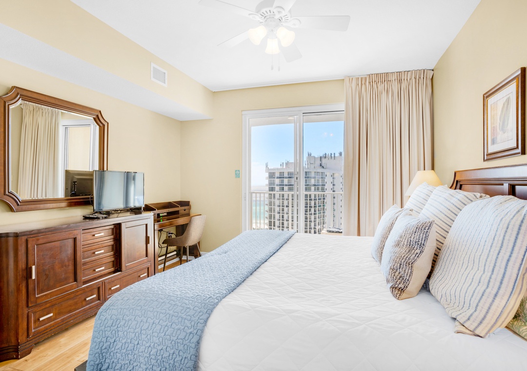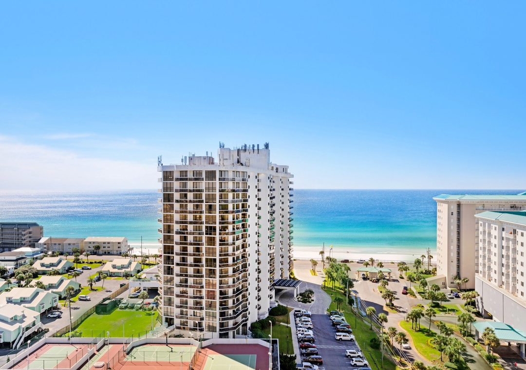 This high rise condo was great. The view from the front and back was wonderful. Amazing view off the back balcony to the beach, we could see where our umbrellas were set up and everything. Really spectacular. The customer care was so nice. I reached out to them a few times during my stay and they were super helpful and responsive. Parking is a little hectic, but the parking lot is plenty big and we never ran out of spaces to find. Two big pools that we did not use, but they are there to enjoy. Walk to the beach was short and easy with a wash off station in between. My family of 5 stayed here. Master bedroom and 2nd bedroom were great. 3rd bedroom with two bunkbeds is tiny, but if you have young kids it's fine. I would stay here again if Miramar/Destin is where you want to be. It was a great place for the 5 nights we stayed.- Reviewed On: 7/16/2023
