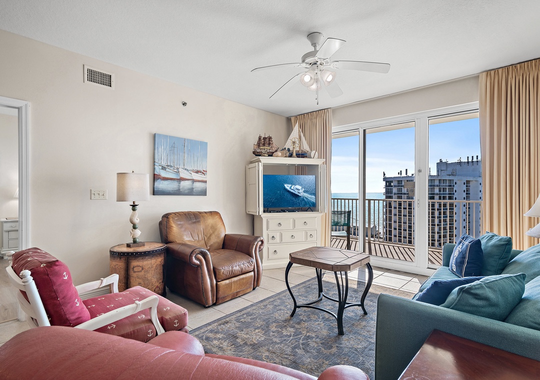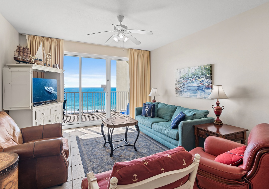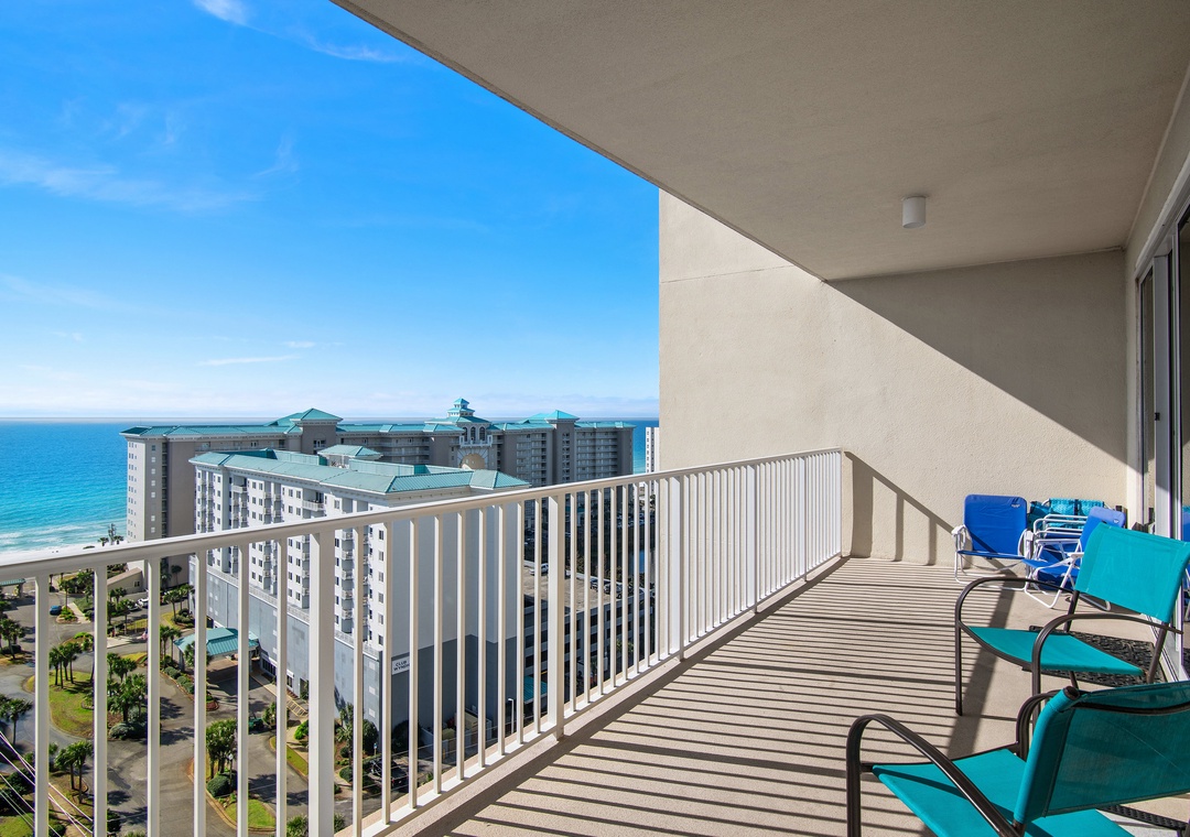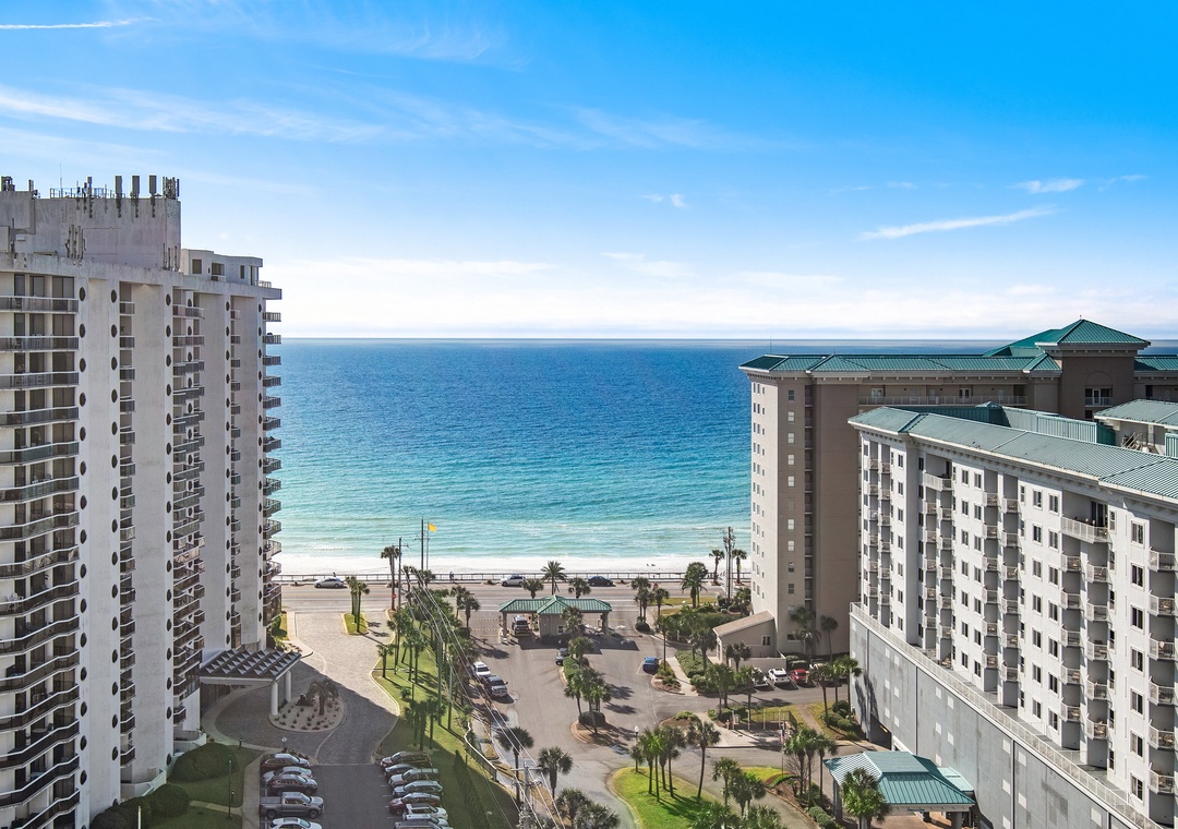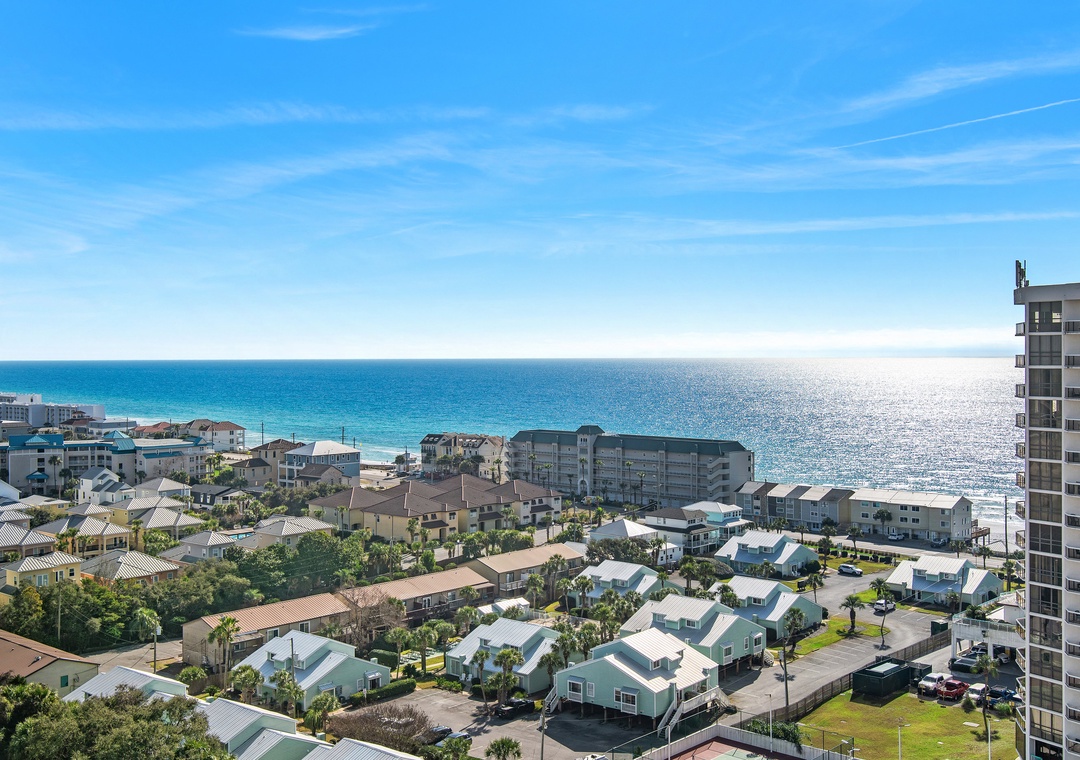 Ariel Dunes offers 24 stories of amazing views that span the sugar white sands and emerald green water of the coastline. The building is angled slightly to the west, and the sunsets are incredible! From the rear of the building, you get a bird's eye view of the lush Seascape Golf Course and the sparkling Choctawhatchee Bay.