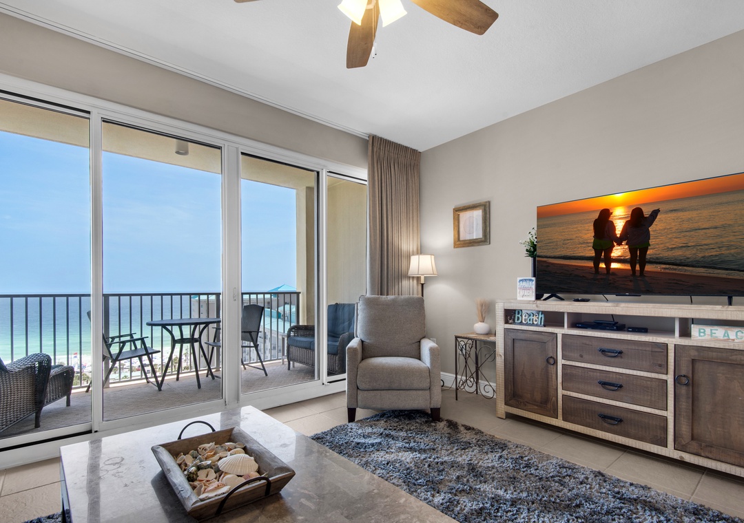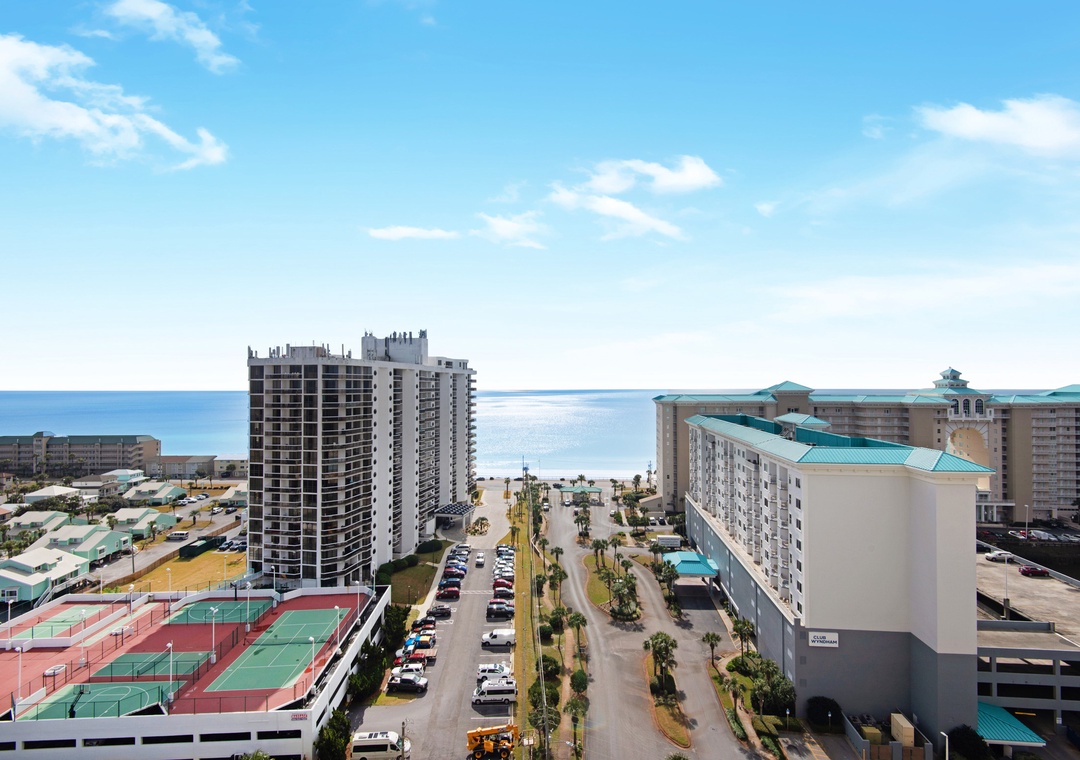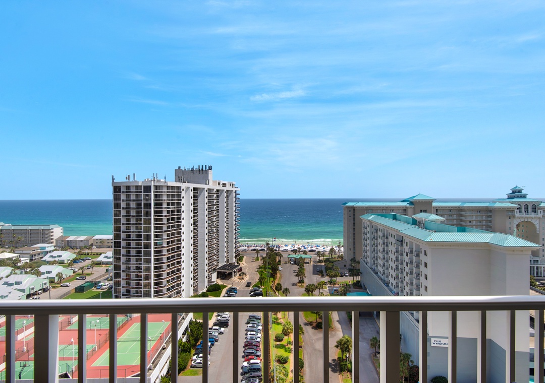 Ariel Dunes offers 24 stories of amazing views that span the sugar white sands and emerald green water of the coastline. The building is angled slightly to the west, and the sunsets are incredible! From the rear of the building, you get a bird's eye view of the lush Seascape Golf Course, and the sparkling Choctawhatchee Bay.