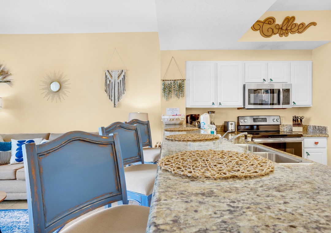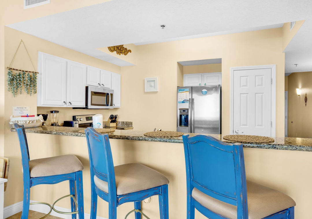 Enjoy spectacular Gulf views from the 17th floor at Ariel Dunes I 1706! This elegant 1BR/1.5BA condo offers a spacious living area, 9-foot ceilings, and an 8-foot sliding glass door to help bring those gorgeous Gulf views to life! Featuring new living room furniture pieces, new décor pieces throughout, new smart TV in the living room, new twin mattresses in bunks, new throw rugs, and a new AC. With a king bed in the master bedroom and twin bunks in the hallway (kids love these), this gorgeous condo sleeps 4 guests comfortably! Modern tile and vinyl plank flooring, granite countertops and stainless-steel appliances, and an in-unit washer/dryer are just some of the details to ensure that your vacation will be simply wonderful. Experience the beach vacation of a lifetime at Ariel Dunes I 1706!