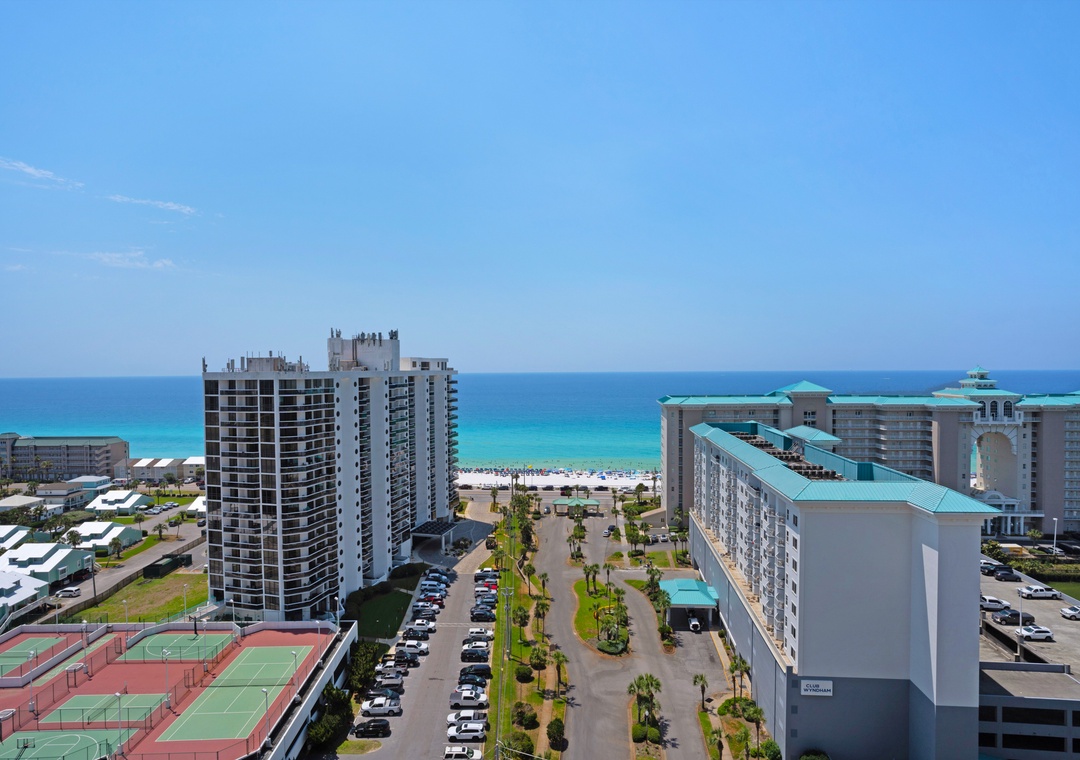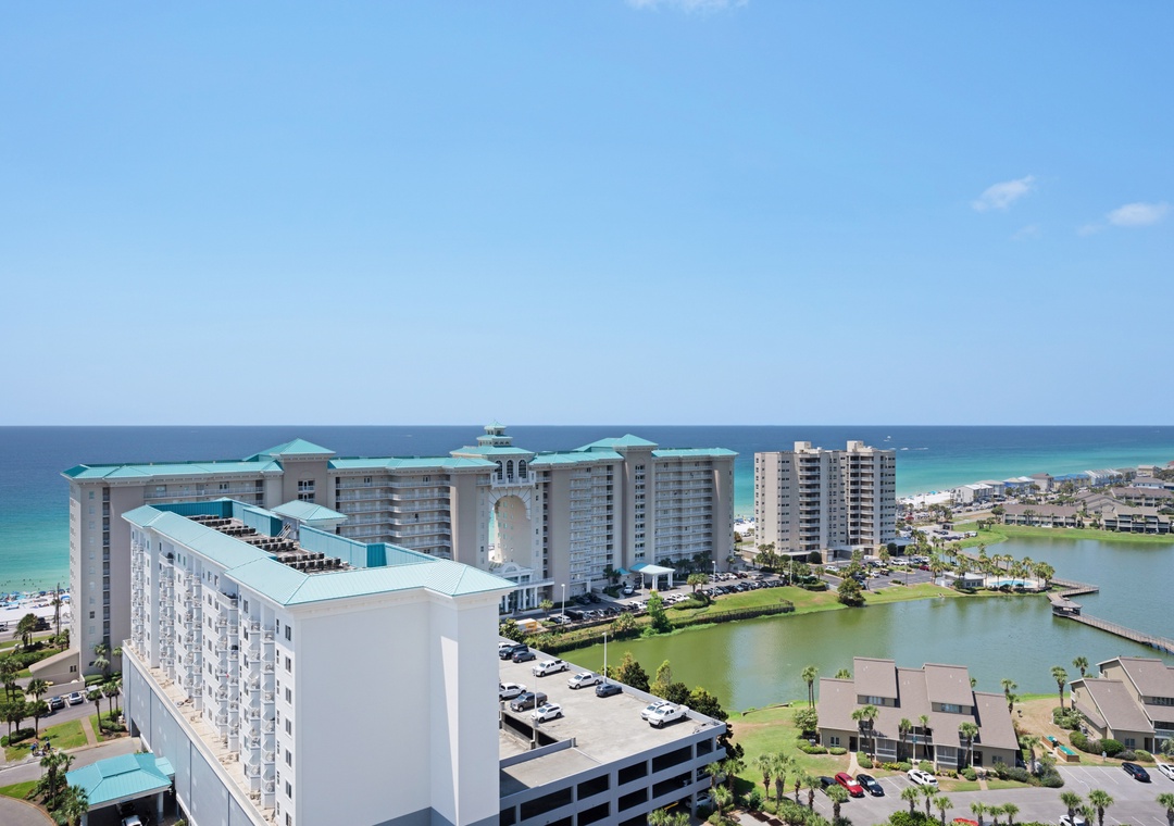 Ariel Dunes offers 24 stories of amazing views that span the sugar white sands and emerald green water of the coastline. The building is angled slightly to the west, and the sunsets are incredible! From the rear of the building, you get a bird's eye view of the lush Seascape Golf Course, and the sparkling Choctawhatchee Bay.