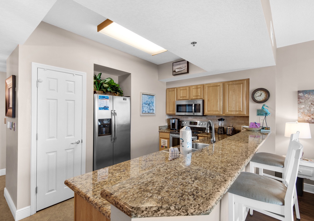 The grocery stores were short drives so we could utilize the full kitchen for meals although we went out for most dinners at local restaurants nearby. Our family would definitely book again for this pretty condo and great location on the gorgeous beach!- Reviewed On: 3/15/2024