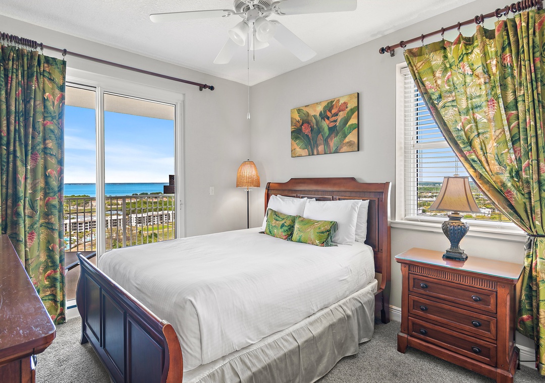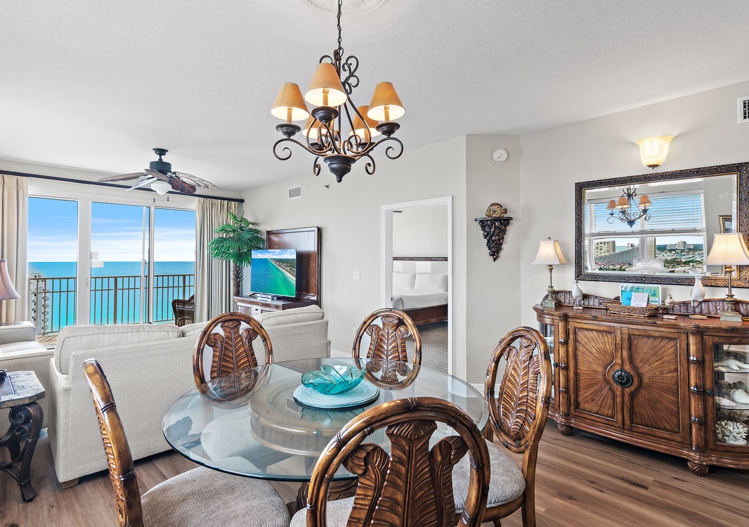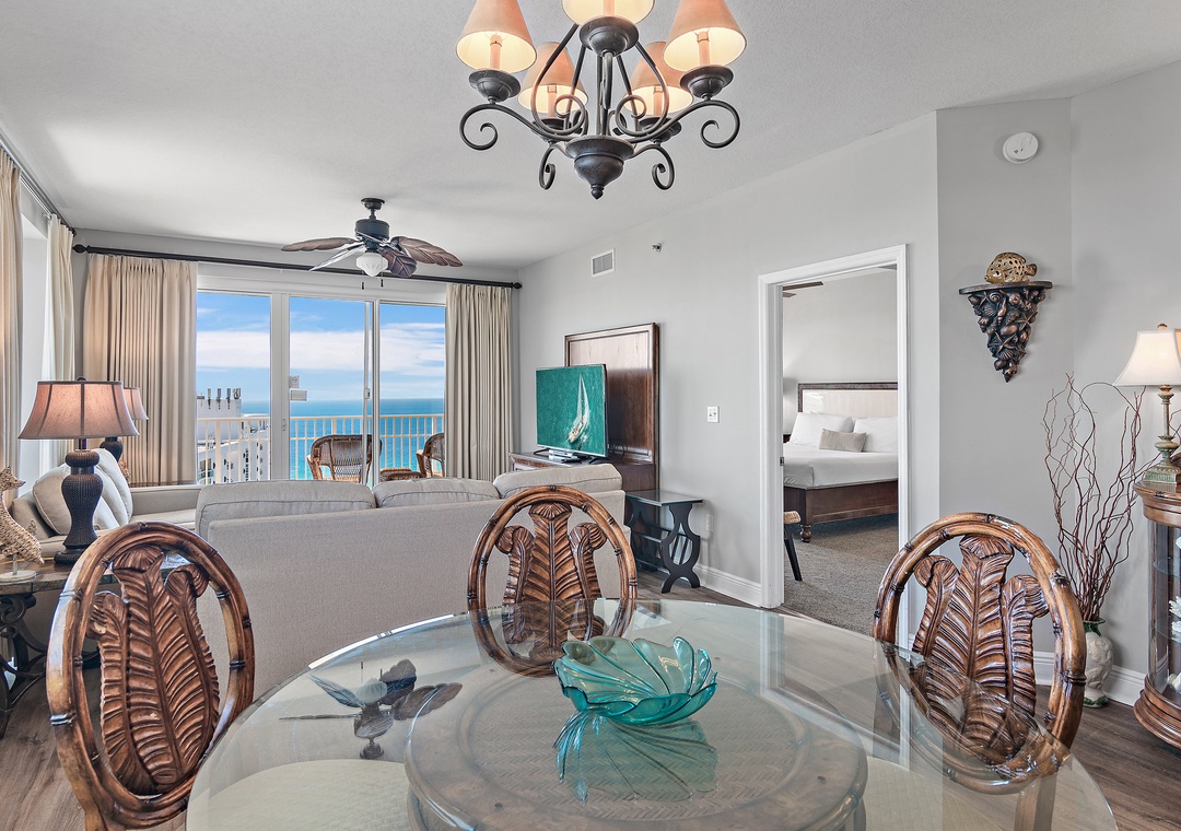 Ariel Dunes I 2001 is an upscale, corner condominium with breathtaking views of the Gulf of Mexico and the surrounding area from the twentieth floor! The living area offers high-end furnishings, beautifully coordinated chairs, a glass-top dining table for eight, an eat-in kitchen, and a large flat-screen TV. The fully equipped kitchen has stainless steel appliances, granite countertops, and all the housewares and appliances you will need for meal preparation. The master bedroom features a king bed, a flat-screen TV, and private balcony access; the master bath has a fabulous garden tub, separate glass-enclosed shower, and dual vanity sinks. The second bedroom offers a twin over full bunk bed and access to a full bathroom with a shower/tub combo and single vanity. The third bedroom is a second master bedroom with a queen bed and access to a private balcony with breathtaking views of the golf course, the coastline, and Choctawhatchee Bay. This bedroom also has a private bathroom with a shower/tub combo. There is a full-size washer and dryer for your convenience. Make your luxury stay at Ariel Dunes I, Unit 2001!