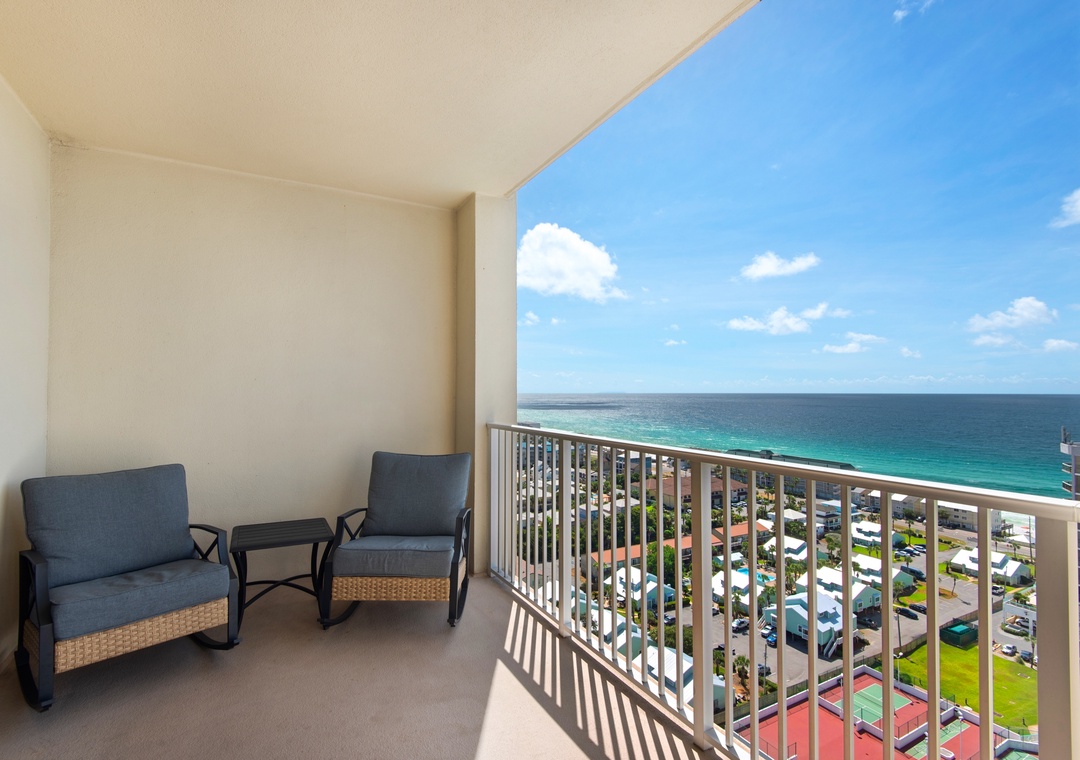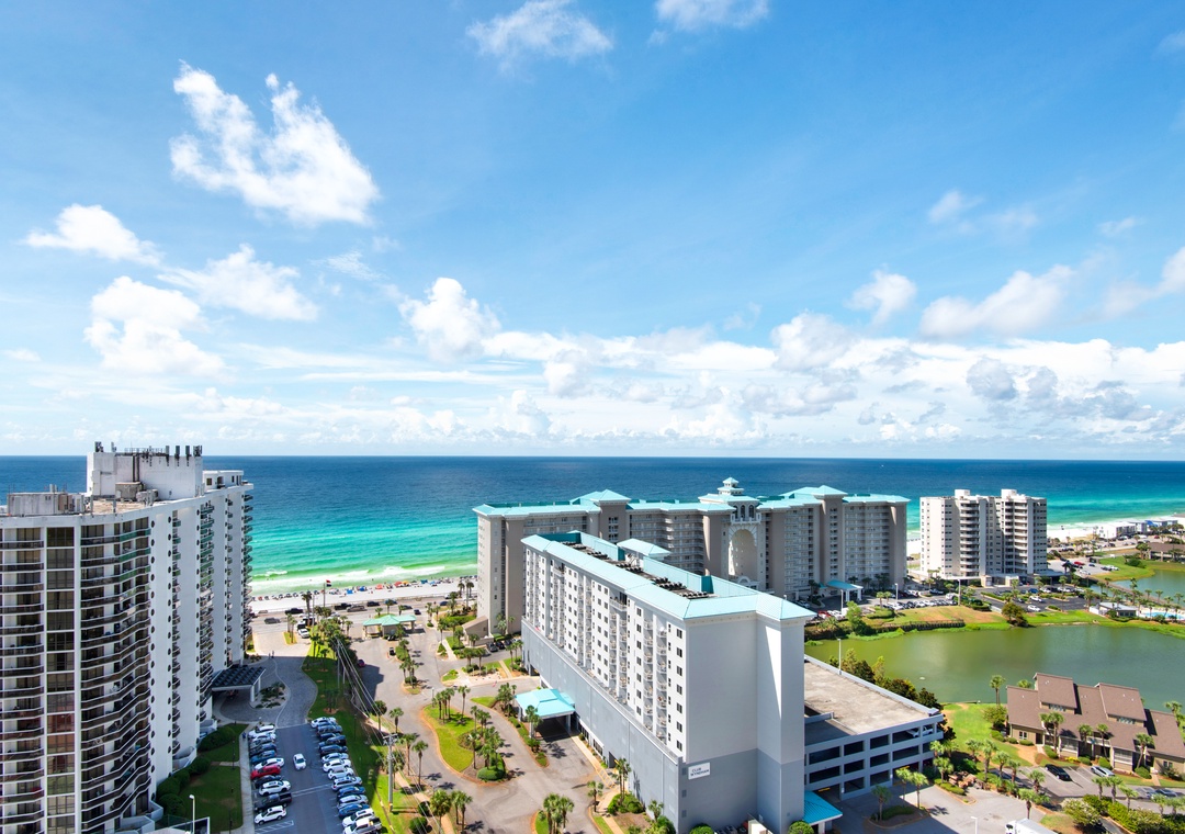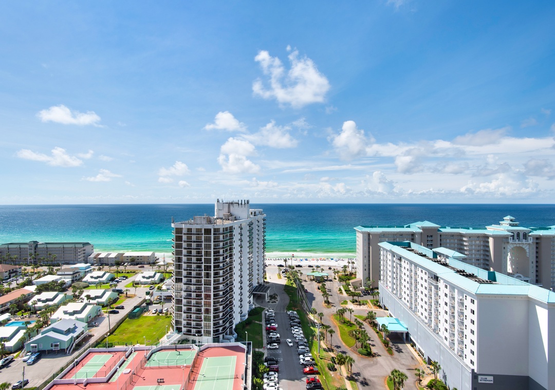 Ariel Dunes offers 24 stories of amazing views spanning the coastline's sugar-white sands and emerald-green water. The building is angled slightly to the west, and the sunsets are incredible! From the rear of the building, you get a bird's eye view of the lush Seascape Golf Course and the sparkling Choctawhatchee Bay.