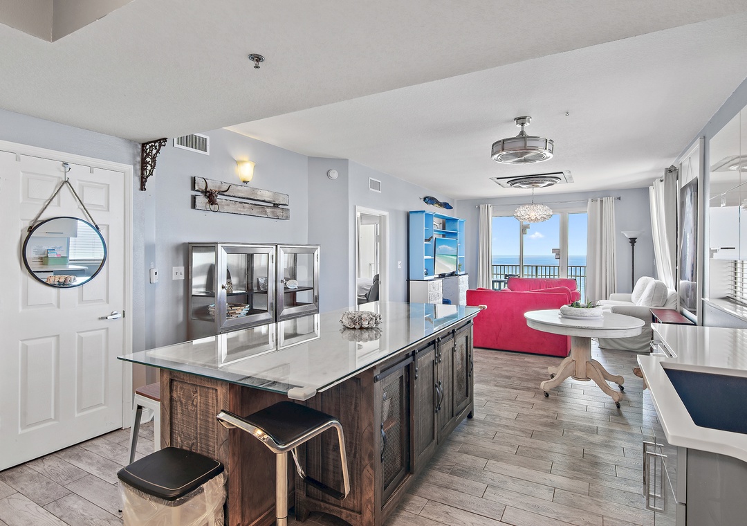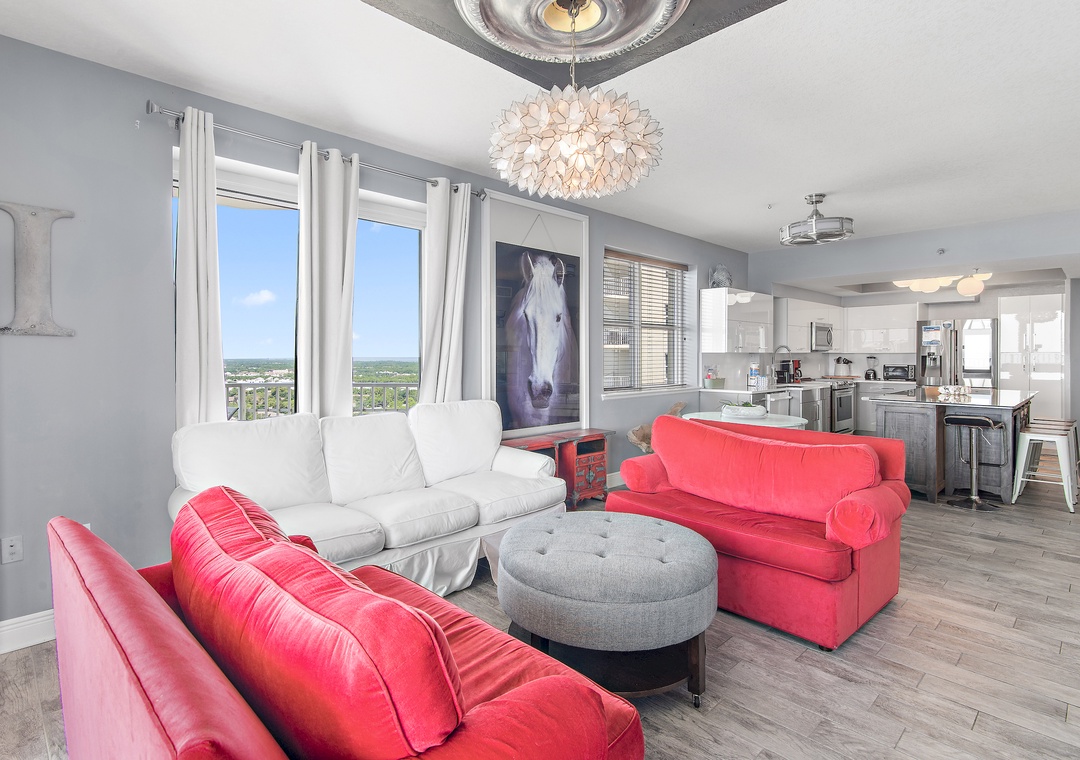Ariel Dunes I 2010 is a luxurious corner condominium perched on the twentieth floor, offering some of the best panoramic views in all of Destin—from sweeping Gulf vistas to serene inland lakes and the charm of this vibrant beach town. Relax on your private balcony with your favorite drink and soak in breathtaking sunsets and the coastal breeze. Inside, the fully equipped kitchen features stainless steel appliances, granite countertops, and all the essentials for effortless meal prep. The master suite offers a king-size Sleep Number bed, flat-screen TV, private balcony access, and an en-suite bathroom with dual vanity sinks and a glass-enclosed shower. The second bedroom is furnished with a twin bed and a full-over-full pullout futon bunk bed, making it a versatile space for kids or additional guests, while the third bedroom includes a twin bed and its own en-suite bathroom with a walk-in shower. The living room provides even more sleeping options with two twin-sized sleeper sofas, comfortably sleeping up to nine guests. A full-size washer and dryer add convenience. Whether you’re enjoying coffee at sunrise or a glass of wine at sunset, Ariel Dunes I 2010 offers one of the most stunning backdrops in Destin—perfect for your next beach escape.