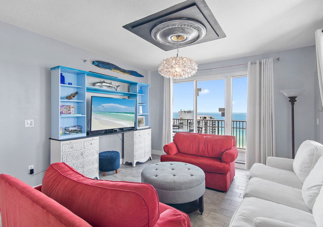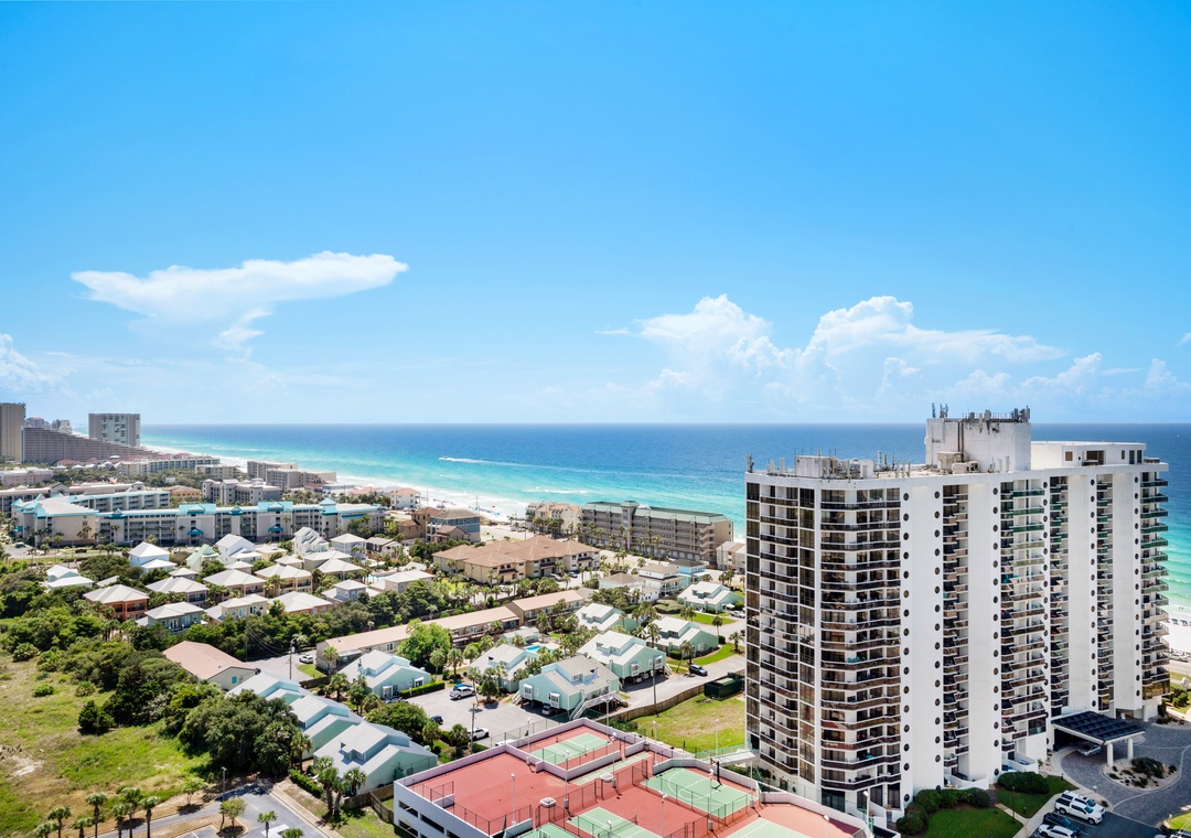 Ariel Dunes offers 24 stories of amazing views that span the sugar white sands and emerald green water of the coastline. The building is angled slightly to the west, and the sunsets are incredible! From the rear of the building, you get a bird's eye view of the lush Seascape Golf Course and the sparkling Choctawhatchee Bay. The spectacular resort amenities include 2000 linear feet of easily accessible beach with chair and umbrella rentals, on-site golf, on-site pools (two are seasonally heated), tennis, watersport rentals, bike rentals, and several restaurants, including the famous Whales' Tail, which features live bands. Ariel Dunes I offers a state-of-the-art fitness center, along with a 12,000sf pool featuring a zero entry, with a spacious deck for lounging and catching some rays before hitting the beach. Kids will love splashing around in the mushroom fountain!