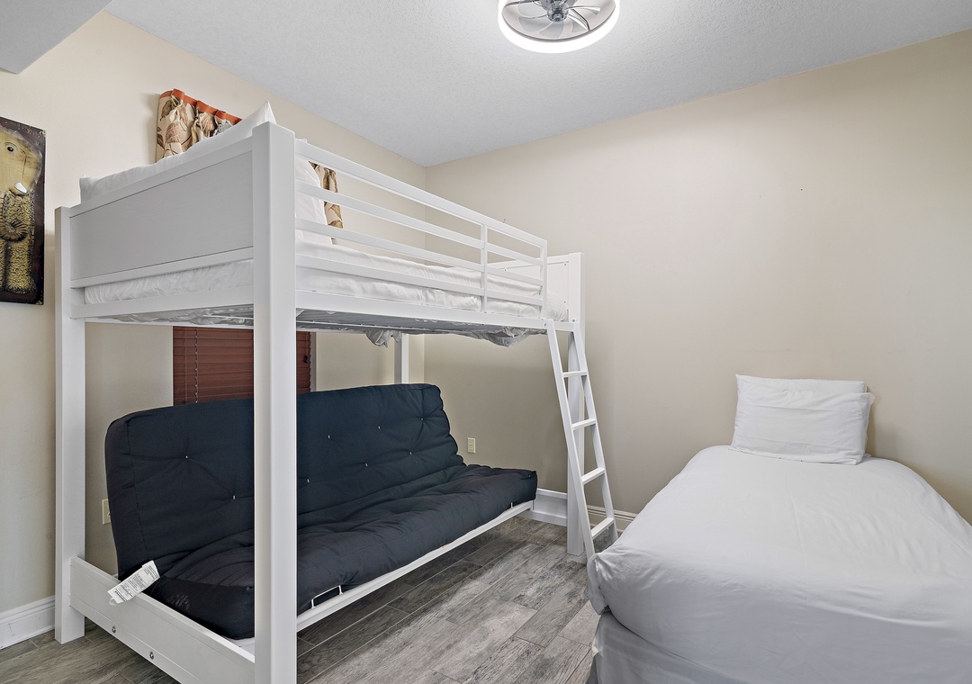 Guest Bedroom: Twin Bed and a Full-over-Full Pullout Futon Bunk Bed