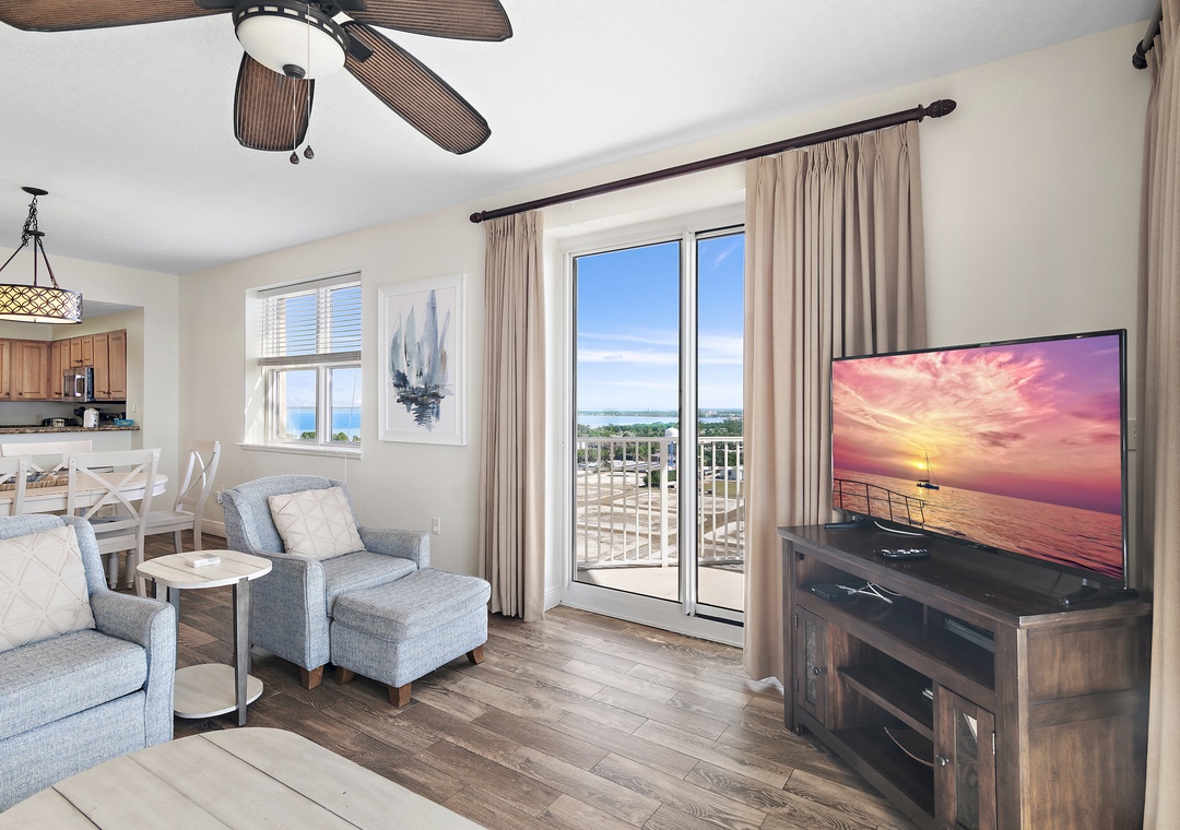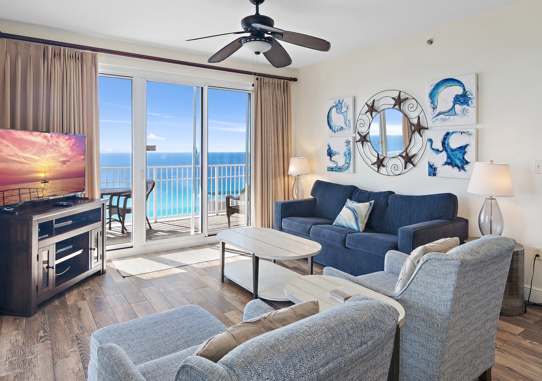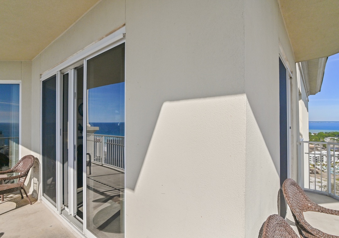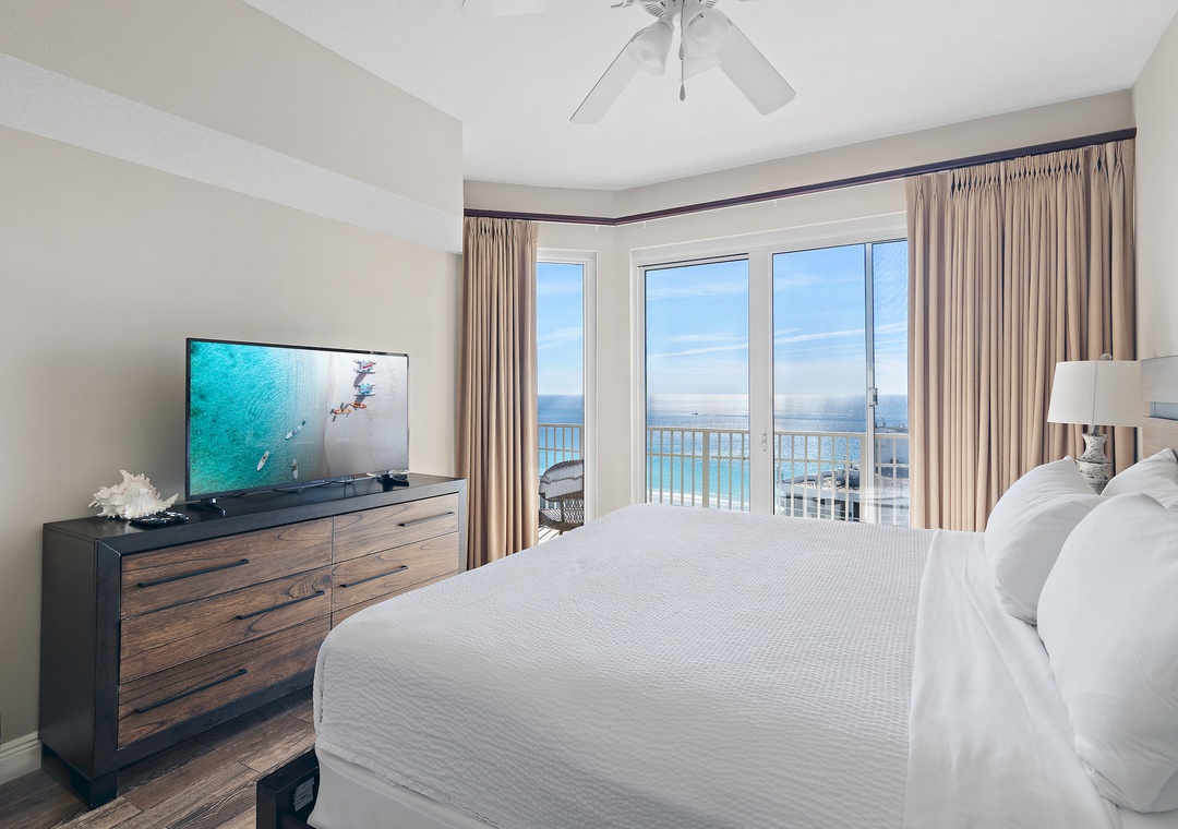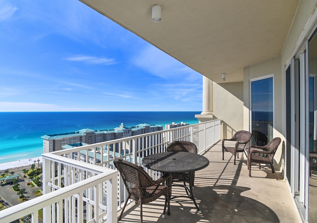 Ariel Dunes offers 24 stories of amazing views that span the sugar white sands and emerald green water of the coastline. The building is angled slightly to the west, and the sunsets are incredible! From the rear of the building, you get a bird's eye view of the lush Seascape Golf Course and the sparkling Choctawhatchee Bay.