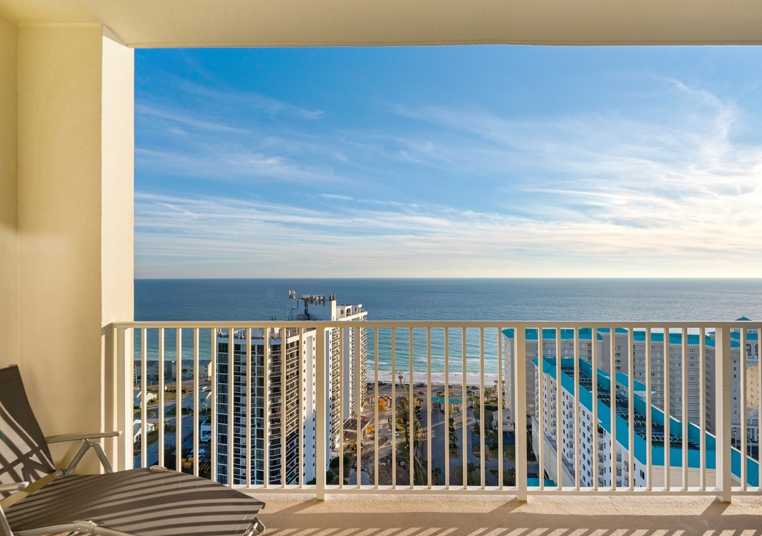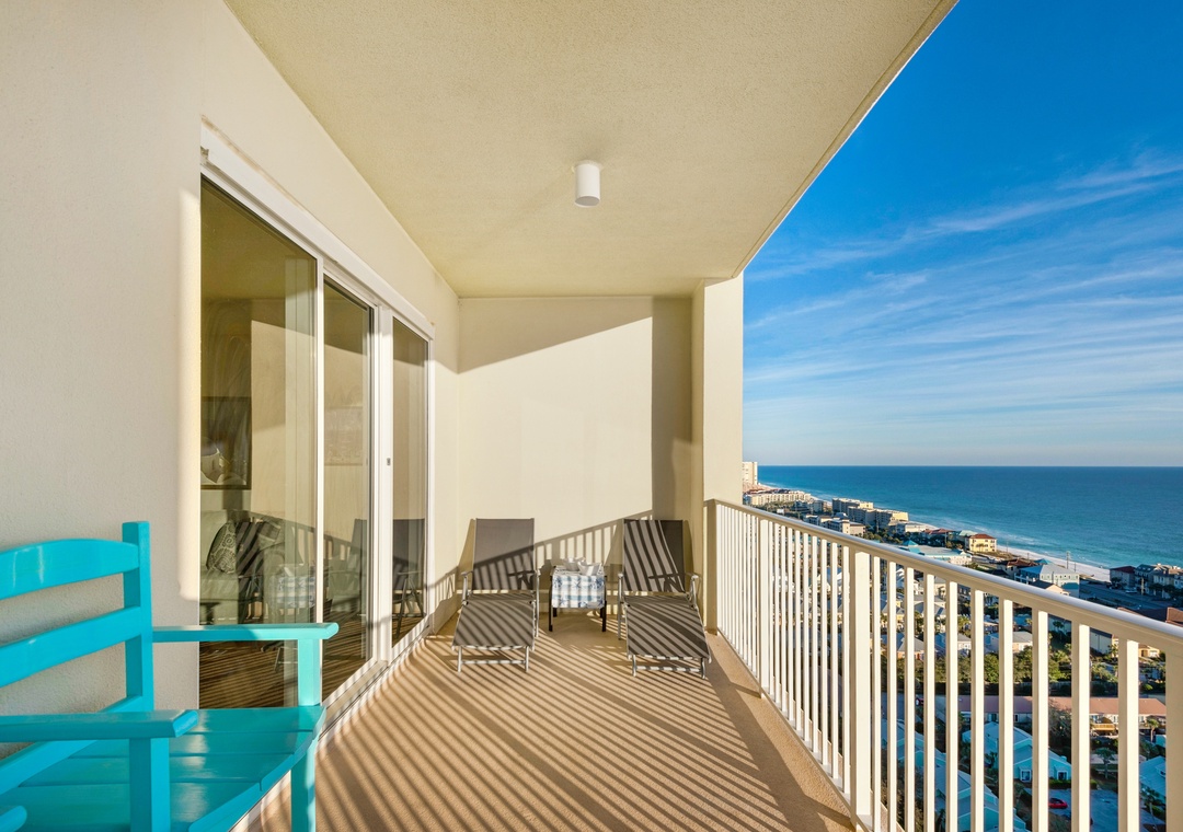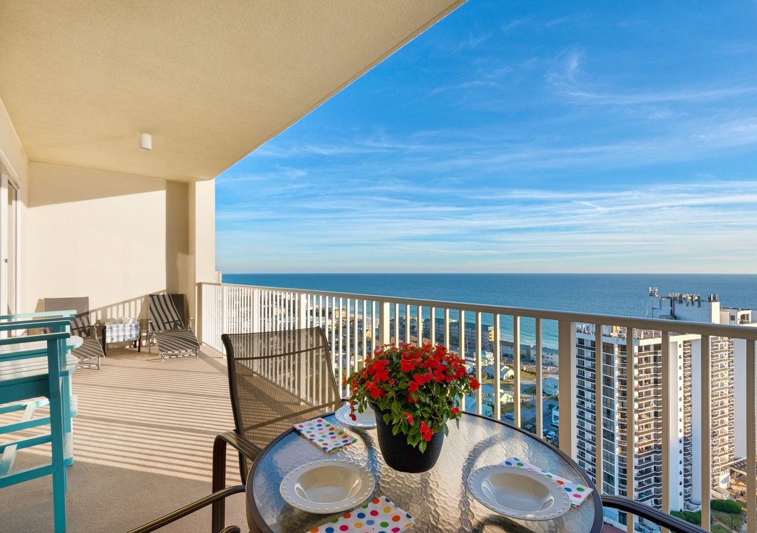 Ariel Dunes offers 24 stories of amazing views that span the sugar white sands and emerald green water of the coastline. The building is angled slightly to the west, at the sunsets are incredible!