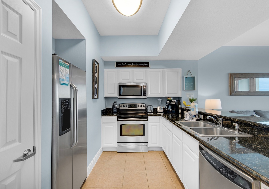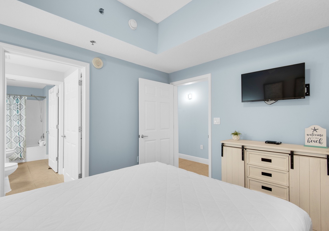 I cannot say enough good things about this condo. First, it was SO CLEAN when we arrived. Secondly, the location! No it is not directly on the beach. It’s about a 8 minute flat surface walk on concrete until you get to the sand. (I’m a slow walker. So for a fast walker it would be less time) I didn’t mind it at all. Most of the walk is shaded by the 2 buildings on each side of the driveway. There’s several washing stations to get all the sand off also. This condo has a cute cafe on the main floor that has really good food. They also deliver to the condo. It is also close to sooo many restaurants. Our favorite was Pompano Joe’s on the beach. It’s only a 3 mile drive. The bed in the master suite is electric so you can raise the head and foot of the bed which was amazing. I will 100% be staying here again and have recommended this condo to all of my friends. The only slight con was I did not receive a email with the smart lock code so I had to call the 24/7 line. But it was a easy fix and they sent the code right away! Thank you for making our vacation even more amazing!- Reviewed On: 6/8/2022