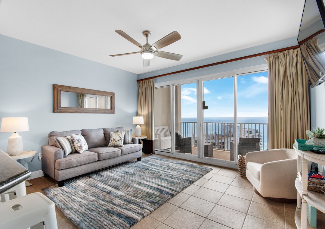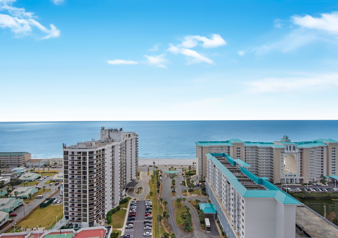 Ariel Dunes offers 24 stories of amazing views that span the sugar white sands and emerald green water of the coastline. The building is angled slightly to the west, and the sunsets are incredible! From the rear of the building, you get a bird's eye view of the lush Seascape Golf Course and the sparkling Choctawhatchee Bay.