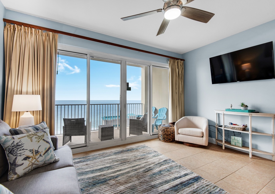 This room is fantastic for a family of 5 to stay in! We brought the kids grandfather as well and still had plenty of room. The incorporated twin beds fit my 12 year old and 9 year old well! There is a fold out couch in the living room and if you don’t want to use that there is enough room for a blow up mattress or two! The master bedroom has a fancy bed that massages and lifts the feet and head as well! The view is fantastic, even with the room being off the road a little bit! I recommend anyone staying here!! I did not count off on the room for this but the Ariel Dunes location is a bit outdated and the elevators were acting up the entire week! As we were leaving the elevators had gotten so bad they were stopping on every floor and one of them had become inoperable. All in all, the room itself is fantastic! I would recommend anyone staying here!!!- Reviewed On: 6/22/2023