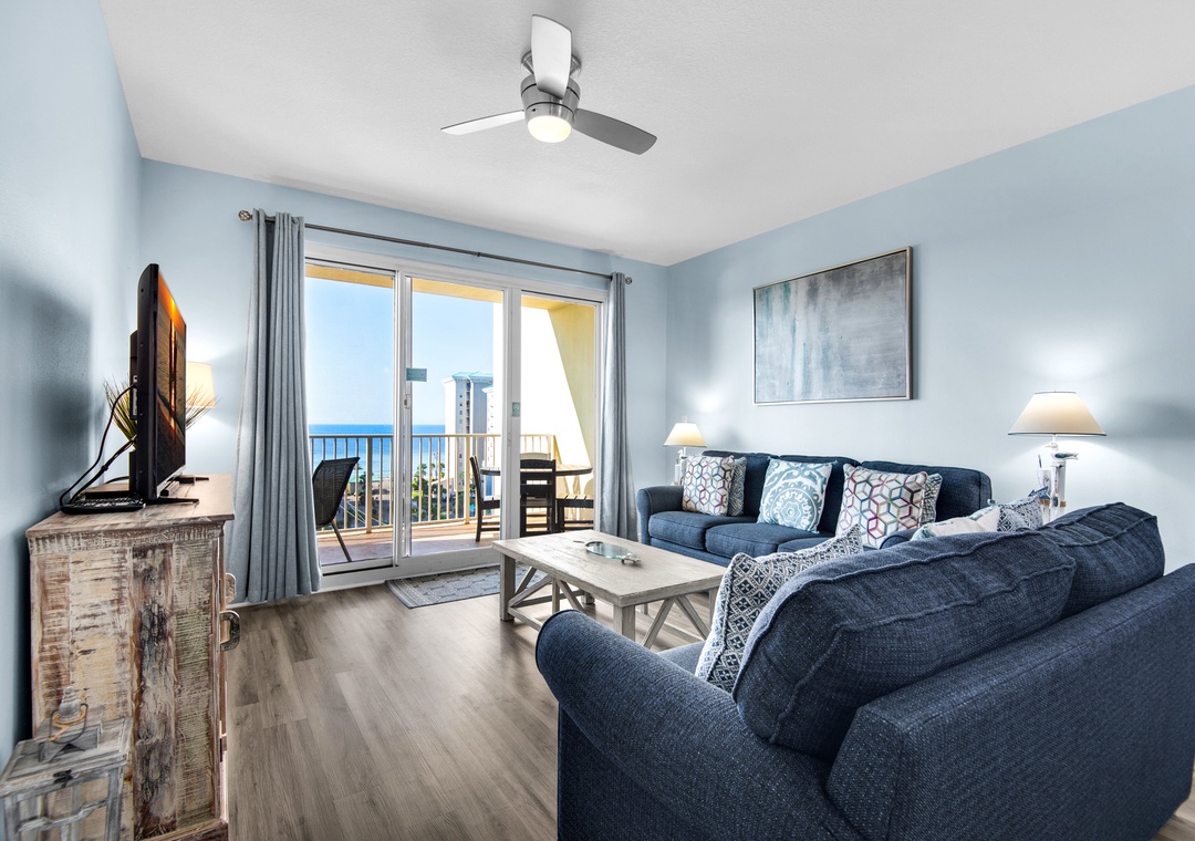 Ariel Dunes I 803 is a lovely 2 bedroom, 2 bath condo with beautiful, modern-coastal furnishings! This lovely condo has panoramic views, a spacious living area, granite counters, and stainless-steel appliances in the kitchen. The king master bedroom features Gulf Views with balcony access and a private bathroom with a separate shower, soaking tub, and double sinks! There is a guest bedroom with a full bed and a sleeper sofa in the living room, sleeping up to 6 guests comfortably. Come treat yourself to the luxurious beach vacation of a lifetime at Ariel Dunes I 803!