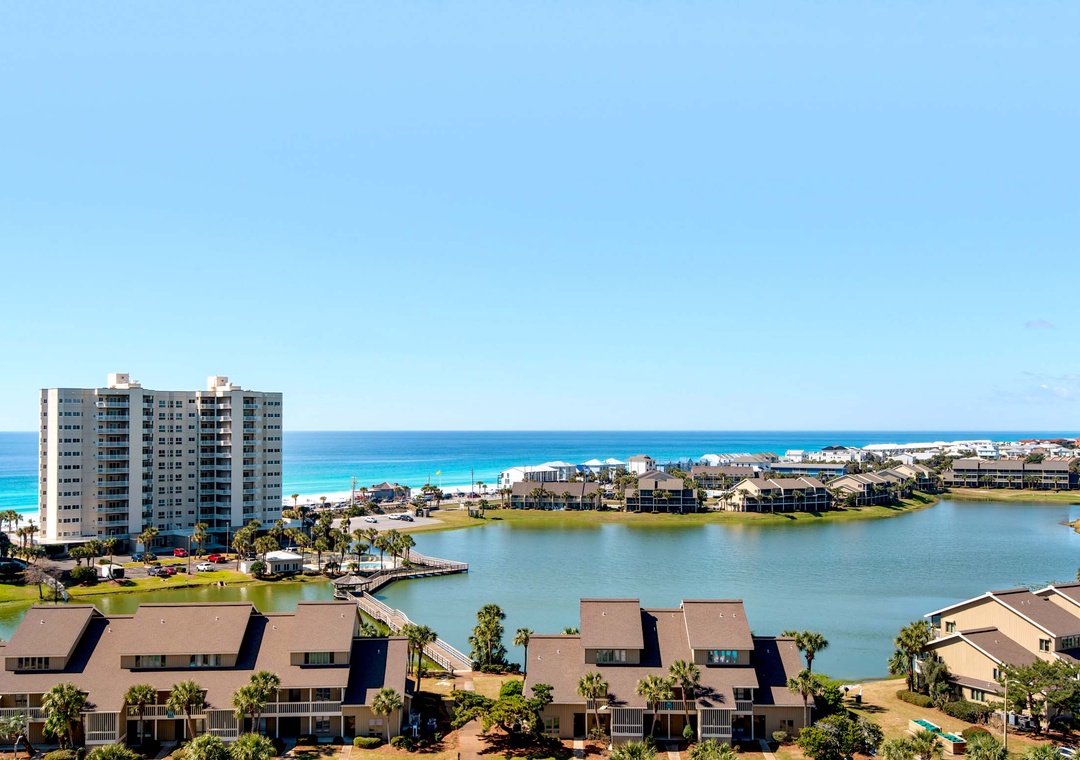 Located in Seascape Resort, Ariel Dunes II offers 24 stories of amazing westward views that span the sugar white sands and emerald green water of Miramar Beach. From the rear of the building, you get a bird's eye view of the lush 18-hole Seascape Golf Course. Ariel Dunes II features three large pools, one with zero entry and a spacious deck for lounging and catching some rays.