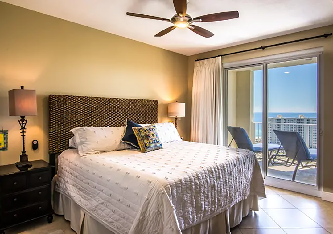 Enjoy sweeping Gulf views from the 16th floor at Ariel Dunes II 1609—a spacious 3-bedroom, 2-bath condo featuring a bonus bunk room! Whip up your favorite meals in the fully equipped kitchen, then relax on your private balcony with morning coffee as you take in the shoreline scenery. The king master suite showcases stunning Gulf views, balcony access, and a spa-like private bath with a walk-in shower and soaking tub. A guest room with a queen bed boasts its own ensuite bathroom, while the cozy bunk room with a twin-over-twin setup is perfect for kids. A sleeper sofa in the living room brings total accommodations to up to 8 guests.