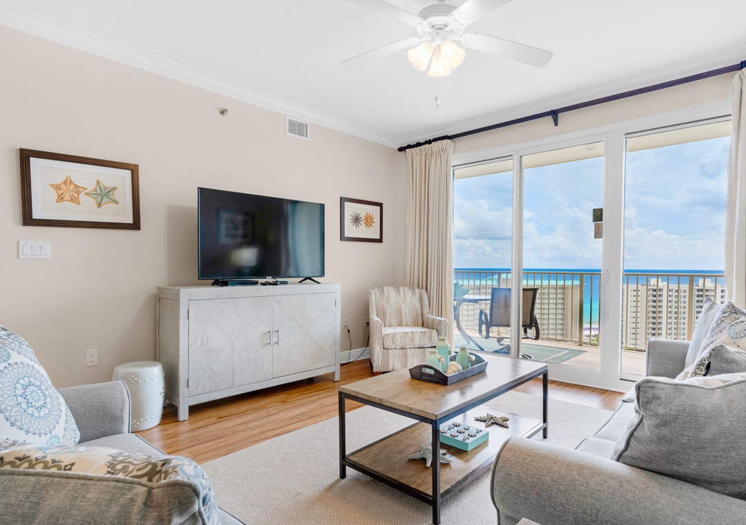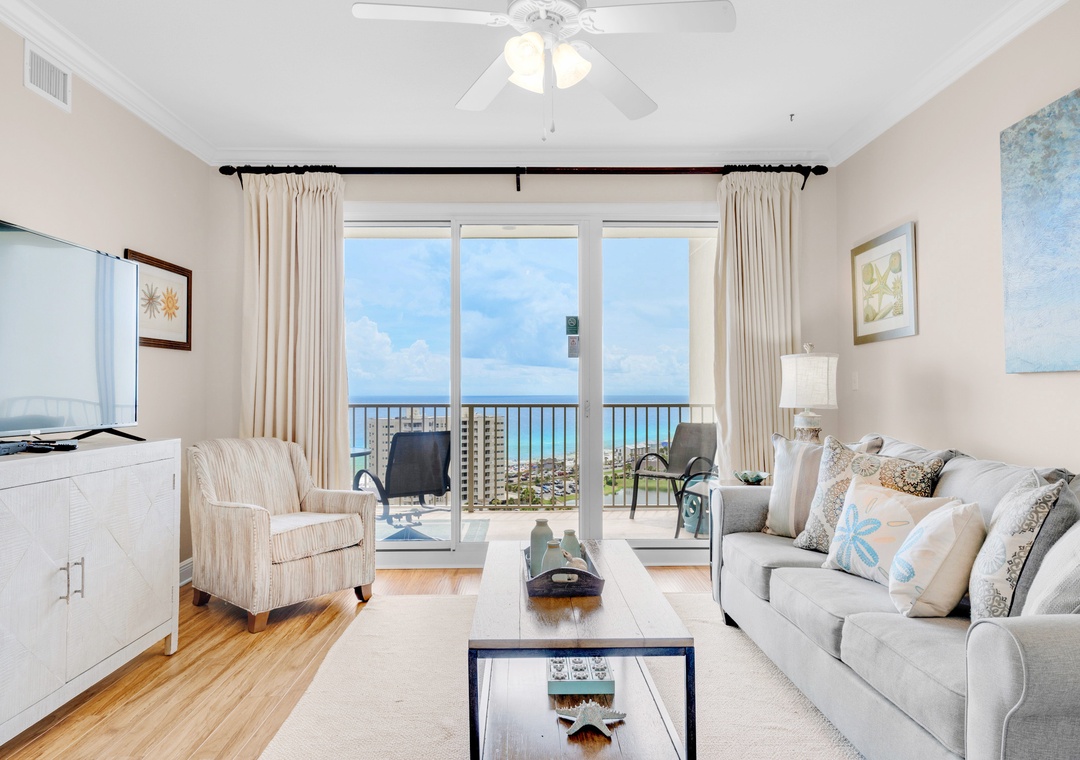 Enjoy spectacular Gulf Views from the 17th floor balcony of Sea Ya Soon in Ariel Dunes II 1703! This lovely condo has panoramic views, a spacious living area, granite counters, and stainless-steel appliances in the kitchen. The king master bedroom features Gulf Views with balcony access and a private bathroom with a separate shower, soaking tub, and double sinks! There is a guest bedroom with a queen bed and a sleeper sofa in the living room, sleeping up to 6 guests comfortably. Come treat yourself to the luxurious beach vacation of a lifetime - Sea Ya Soon!